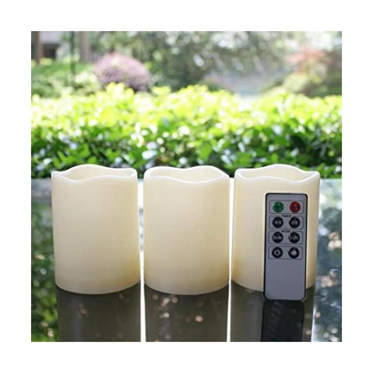 Velas LED sin llama impermeables para exteriores, funciona con pilas, con temporizador remoto, luces decorativas de resina plástica eléctrica, para Navidad, boda, fiesta, decoración, suministros de regalo, 3 piezas