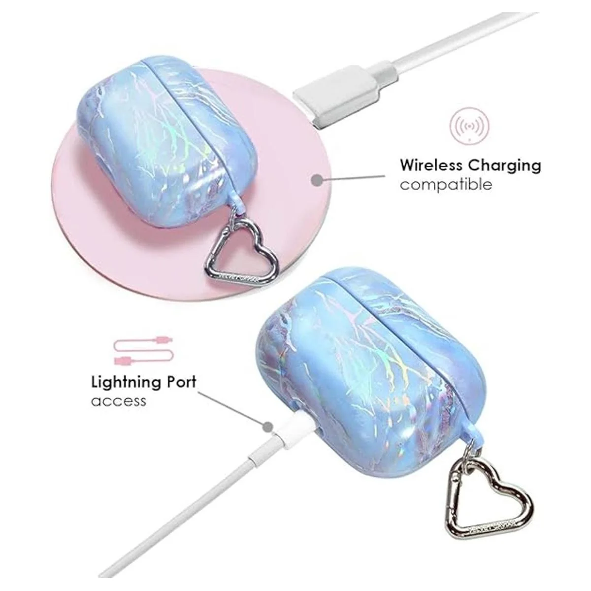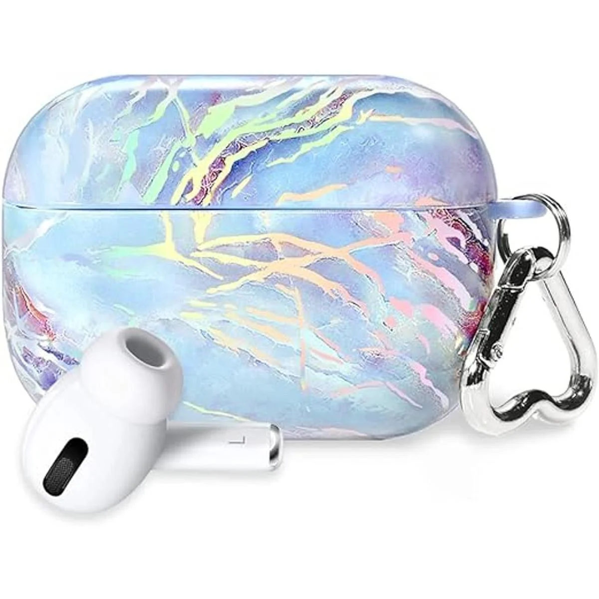 Velvet Caviar Funda de mármol para AirPods Pro para mujeres, niñas con llavero, fundas rígidas protectoras geniales compatibles con Apple Airpod Pro Hologgraphic Pink Blue