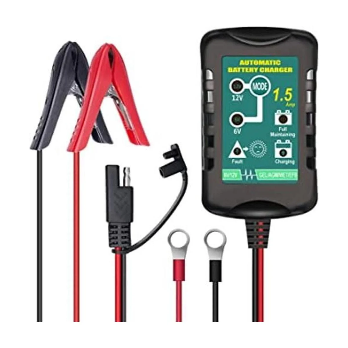Carga y mantiene: cargador de batería de 12 V / 6 V 1.5 A para baterías SLA / VRLA / GEL / AGM / WET Lead Acid de 6 voltios y 12 voltios.