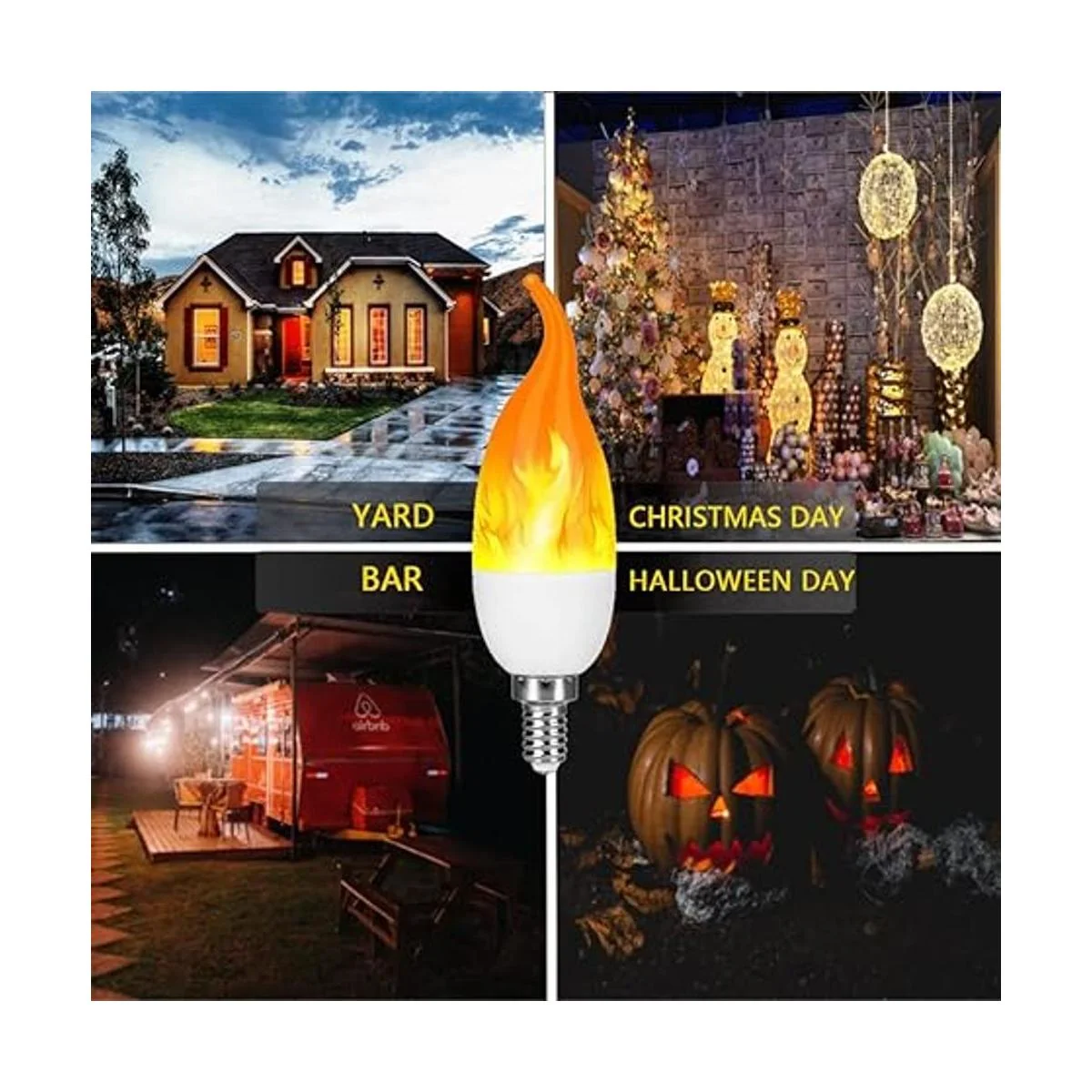 Bombillas de llama de diseño de 3 modos: modo de emulación de llama, modo de respiración y modo de luz general. Cuando enciendas/apagas las bombillas de llama, estos 3 hermosos modos se cambiarán alrededor uno por uno. Utiliza diferentes modos para diferentes cularlocaciones para crear la atmósfera que desees.
