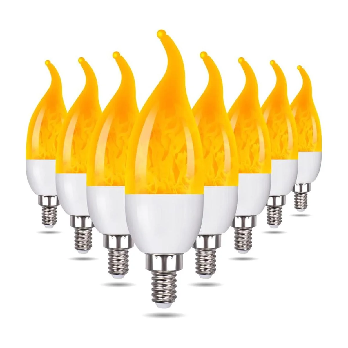 Venforze Paquete de 8 bombillas de llama E12, 3 modos de luz LED de candelabro de 1.2 vatios, bombillas de llama de araña blanca cálida, bombillas de vela de 1800 K, punta de llama para decoraciones de fiestas de Navidad