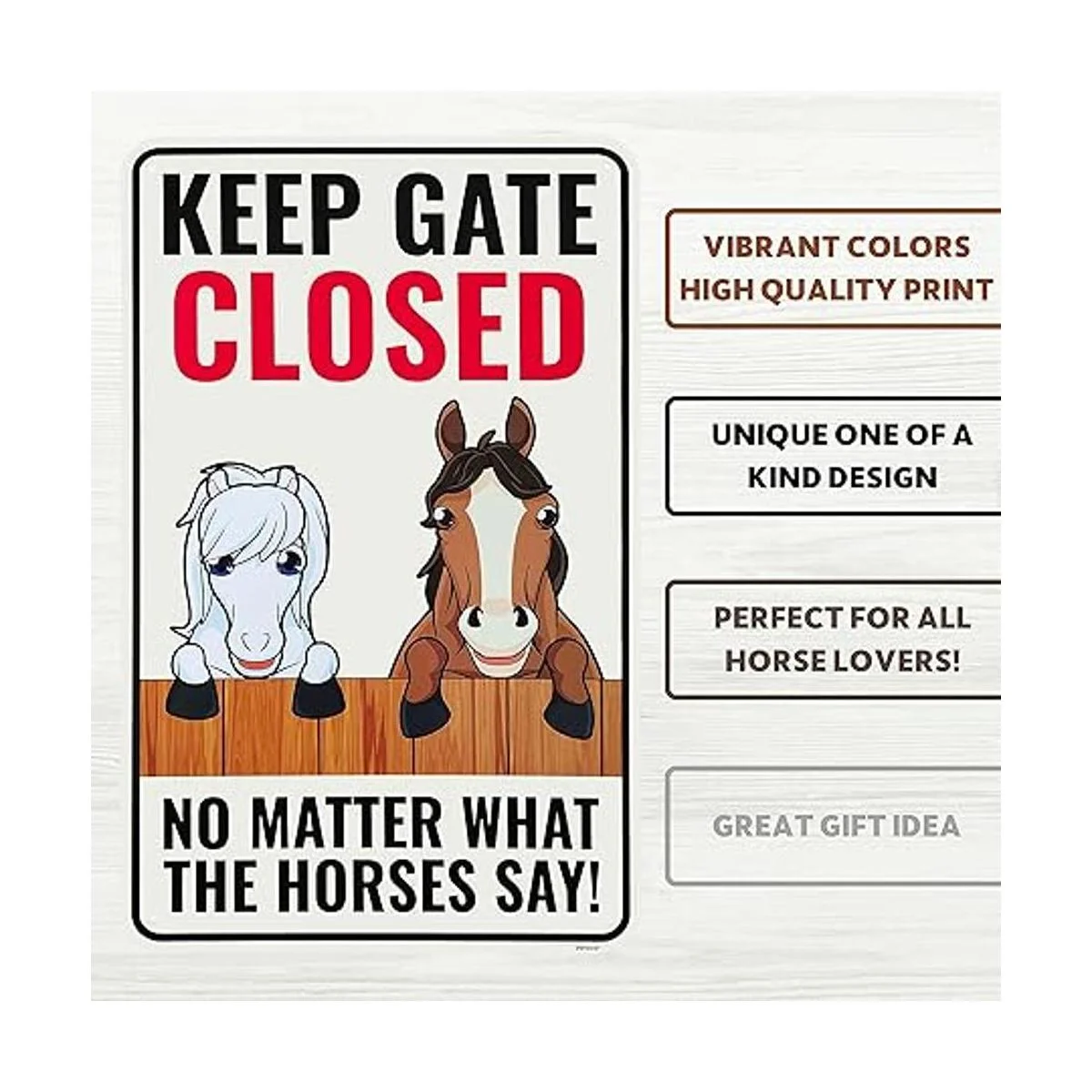Diseño único: cada cartel que hacemos tiene ilustraciones originales y ha sido cuidadosamente hecho pensando en ti, compra perfecta para todas las ocasiones Mantén la puerta cerrada, no importa lo que dicen los caballos