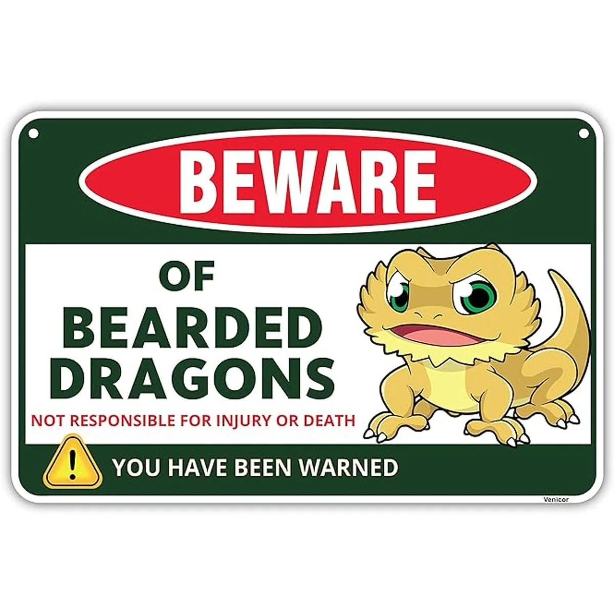 Venicor Letrero decorativo de dragón barbudo 8 x 12 pulgadas Aluminio Accesorios de tanque de dragón barbudo juguete de peluche regalos de peluche