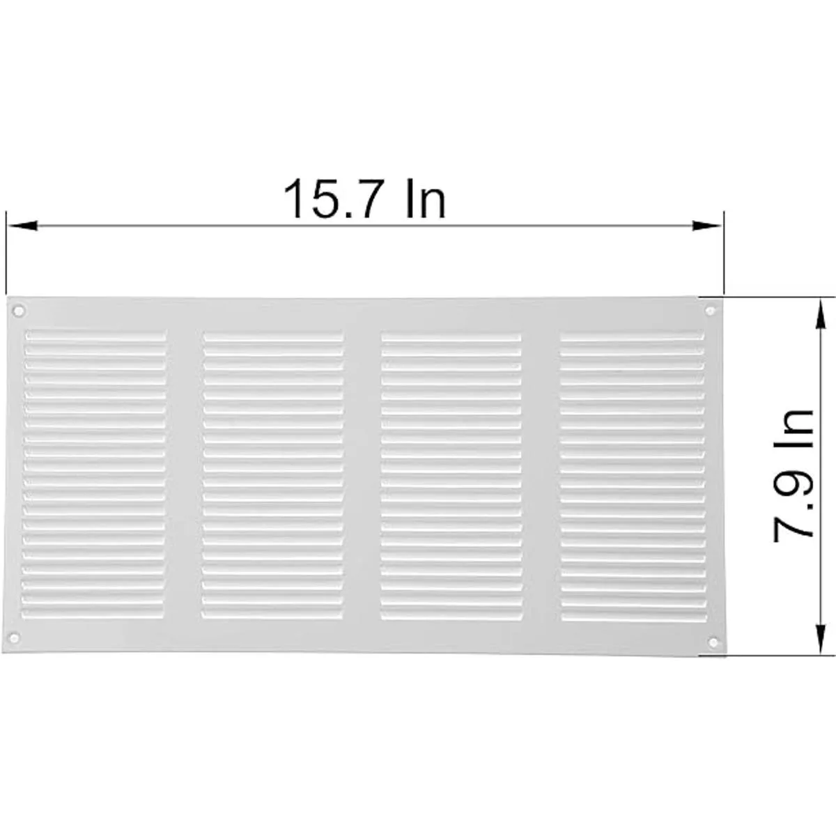 Cubierta de ventilación de 8 x 16 pulgadas. Dimensiones de la rejilla: 15 x 6,30 pulgadas, utilizable tanto para interiores como exteriores. Tapa de ventilación de aire fresco fácil de instalar, cubierta de parrilla.
