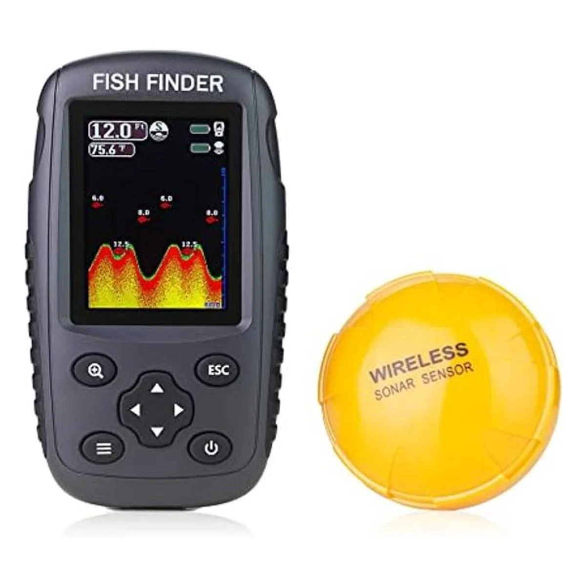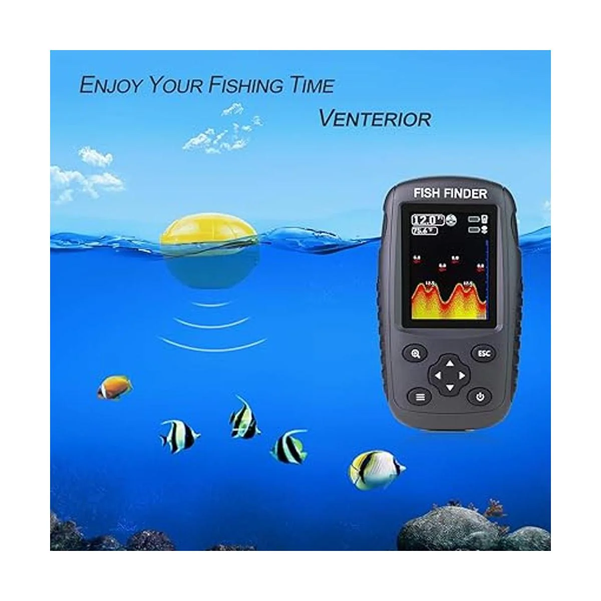 Venterior Buscador de peces recargable portátil con sensor de sonar inalámbrico, localizador de profundidad con tamaño de pez, temperatura del agua, contorno inferior, pantalla LCD a color