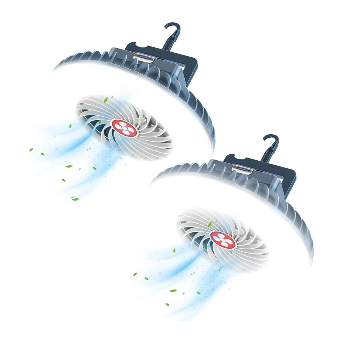 Ventilador de camping portátil con linterna LED XTAUTO recargable por USB, impermeable, con gancho para colgar, kit de supervivencia para interiores, exteriores, senderismo, coche, oficina, escritorio, emergencia, apagón de energía, paquete de 2 unidades