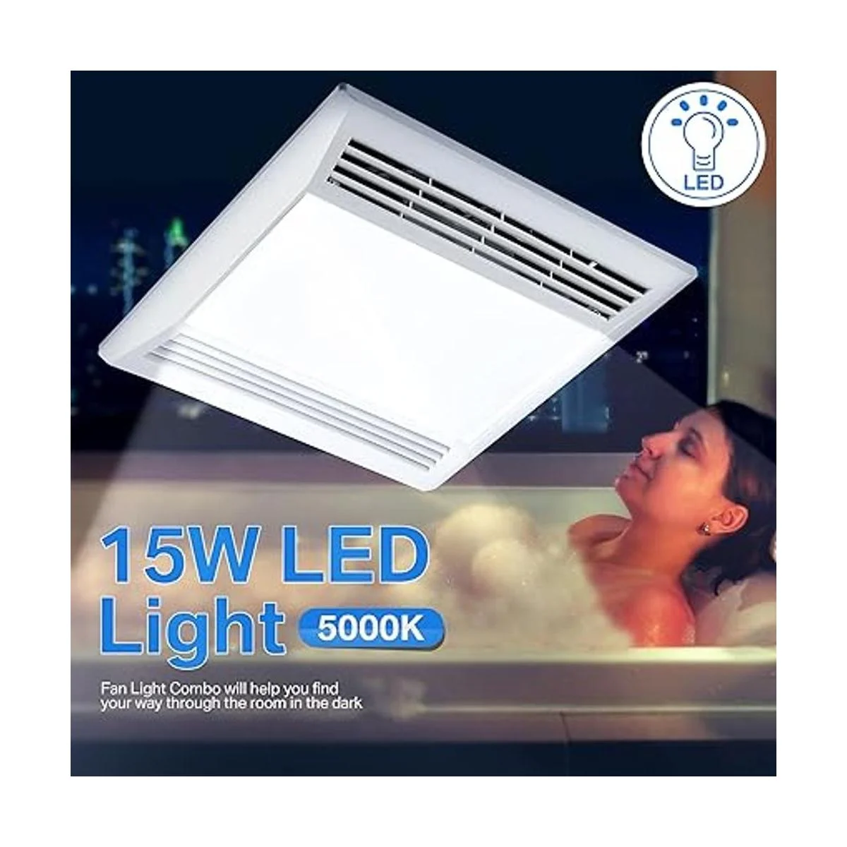 Ventiladores de ventilación domésticos: ventilador de escape silencioso y eficiente energéticamente y combo de luz de 110 CFM y 1.0 Sones, 110 V 45 W con luz LED de 15 W, 50/60 Hz para ayudar a controlar la calidad del aire, reducir la humedad, los olores, lo suficientemente potente para habitaciones incluyendo baño de hasta 105 pies cuadrados. pies para tu conveniencia; recomendado para instalación profesional de baño