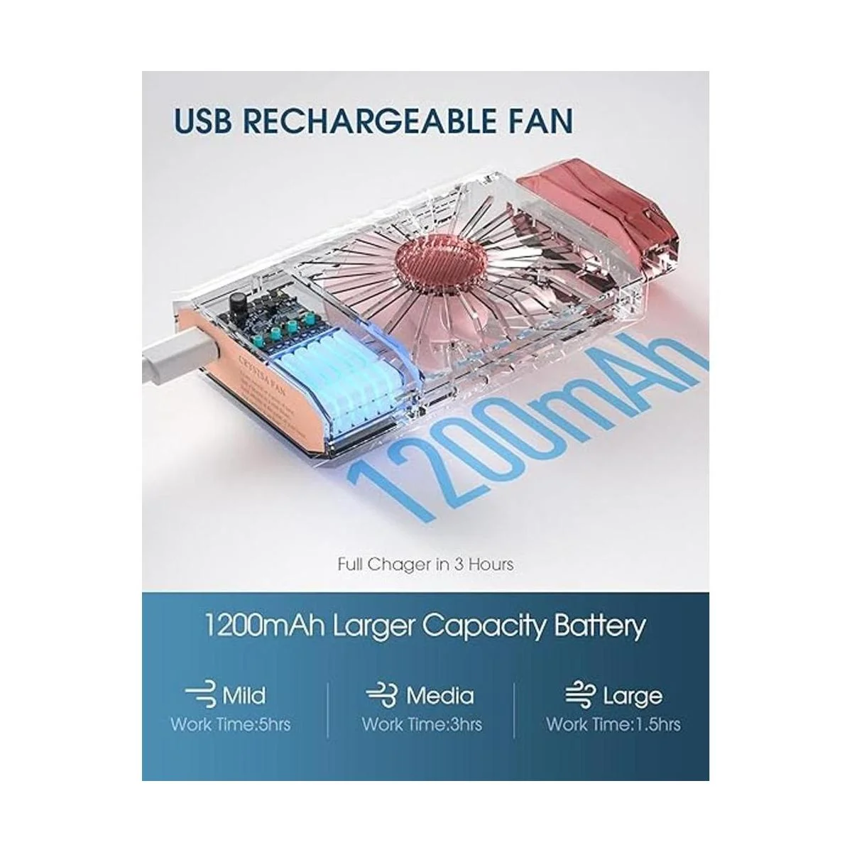 Ventilador de mano para dama, pequeño ventilador personal recargable con ajuste de 3 velocidades, potente ventilador portátil silencioso, mini ventilador eléctrico de refrigeración para niñas, mujeres, oficina, escuela, trabajo, hogar, color rosa
