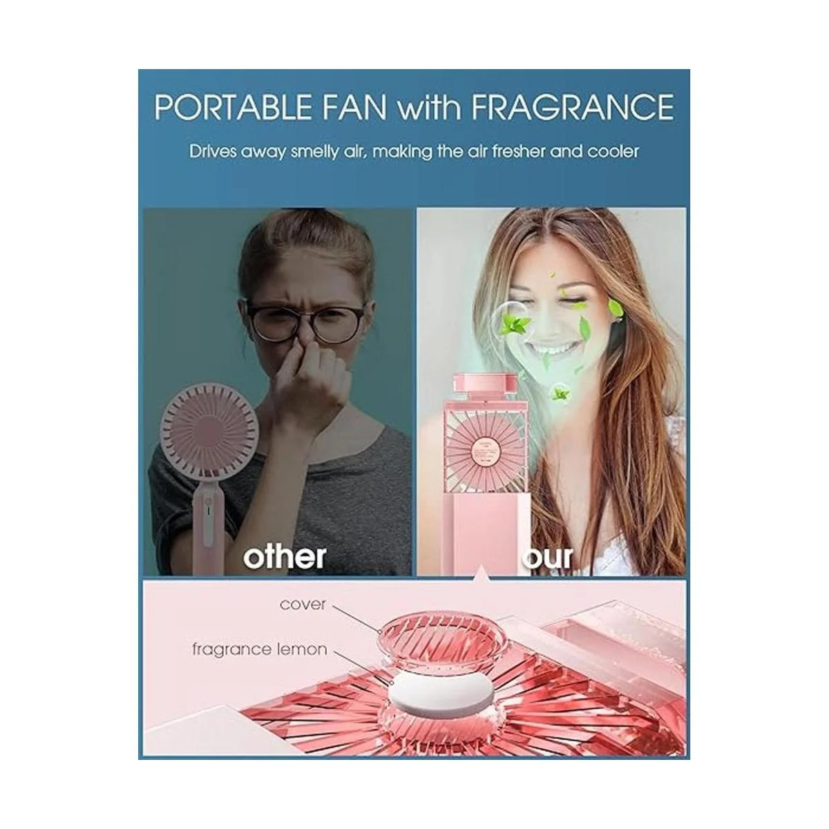 Diseño de fragancia Este mini ventilador de mano difiere con otros ventiladores de mano, nuestro mini ventilador tiene un diseño para instalar tabletas de incienso, que no solo te mantiene fresco, sino que también hace que el aire que te rodea perfume.