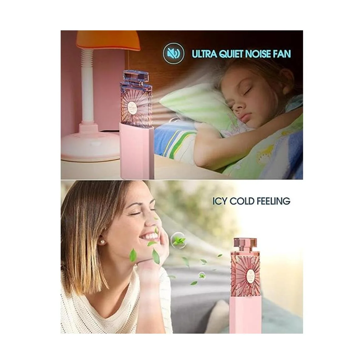 Diseño portátil El ventilador personal portátil tiene como botella de perfume, diseño extraíble en tu bolso o bolsillo. Este ventilador de mano tan ligero solo pesa 4.41 oz. Fácil de llevar para trabajar, viajar, escuela y mantenerte fresco ya sea al aire libre o en interiores en verano.