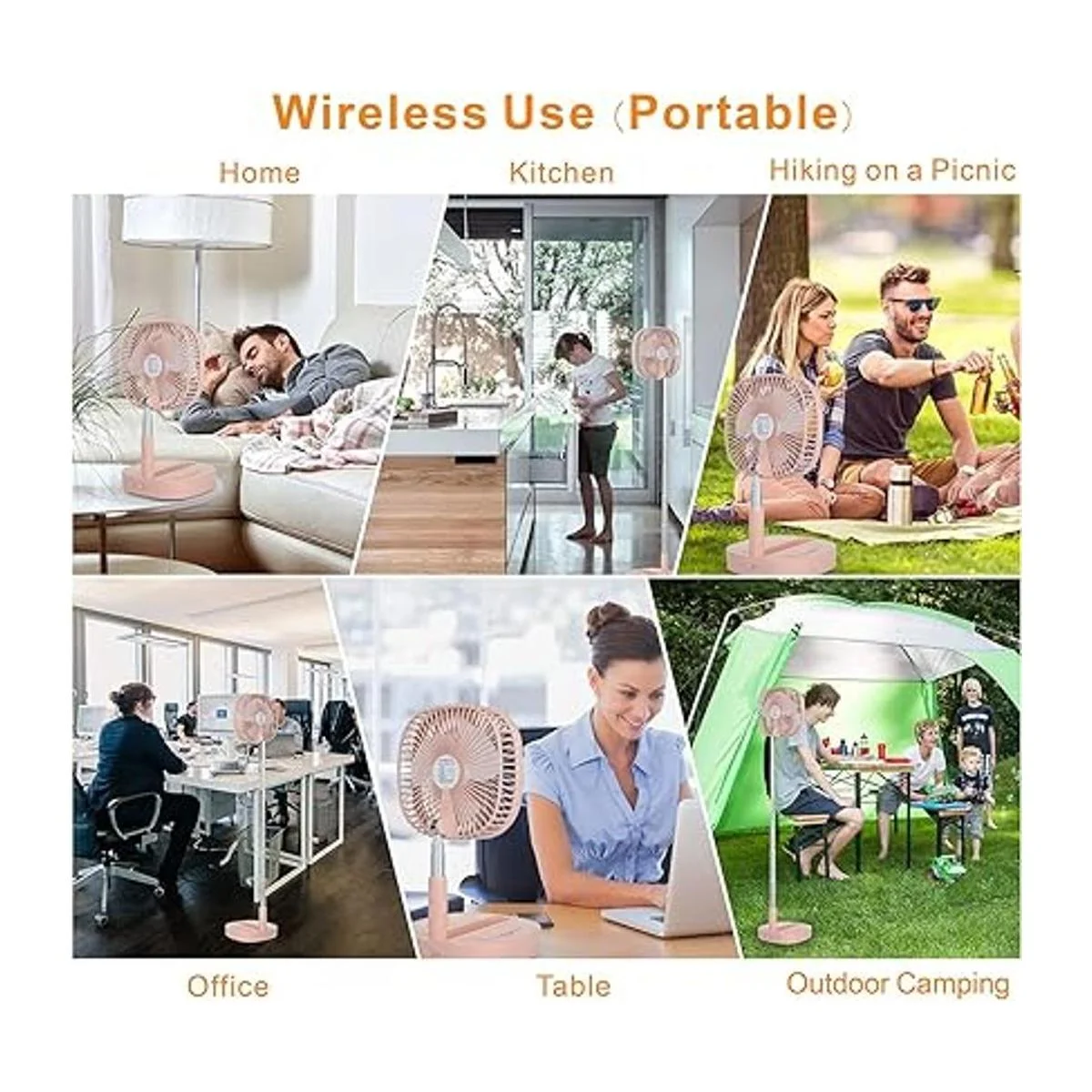 Ventilador de pedestal portátil, ventilador de pie plegable, ventilador de escritorio plegable, uso inalámbrico, batería recargable de 7200 mAh, control remoto, telescópico de 4 velocidades para el hogar, cocina, campamento al aire libre rosa