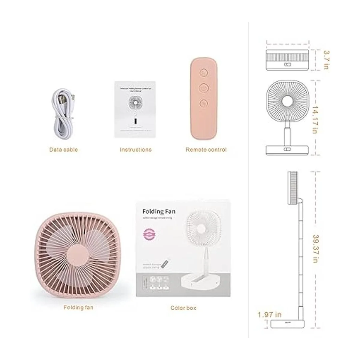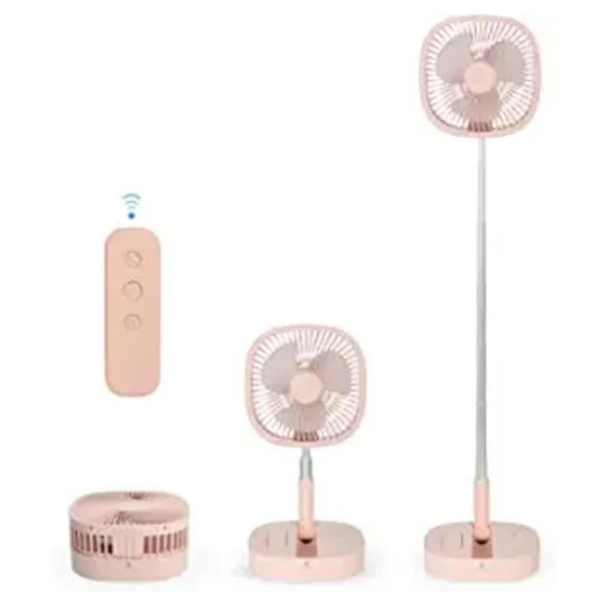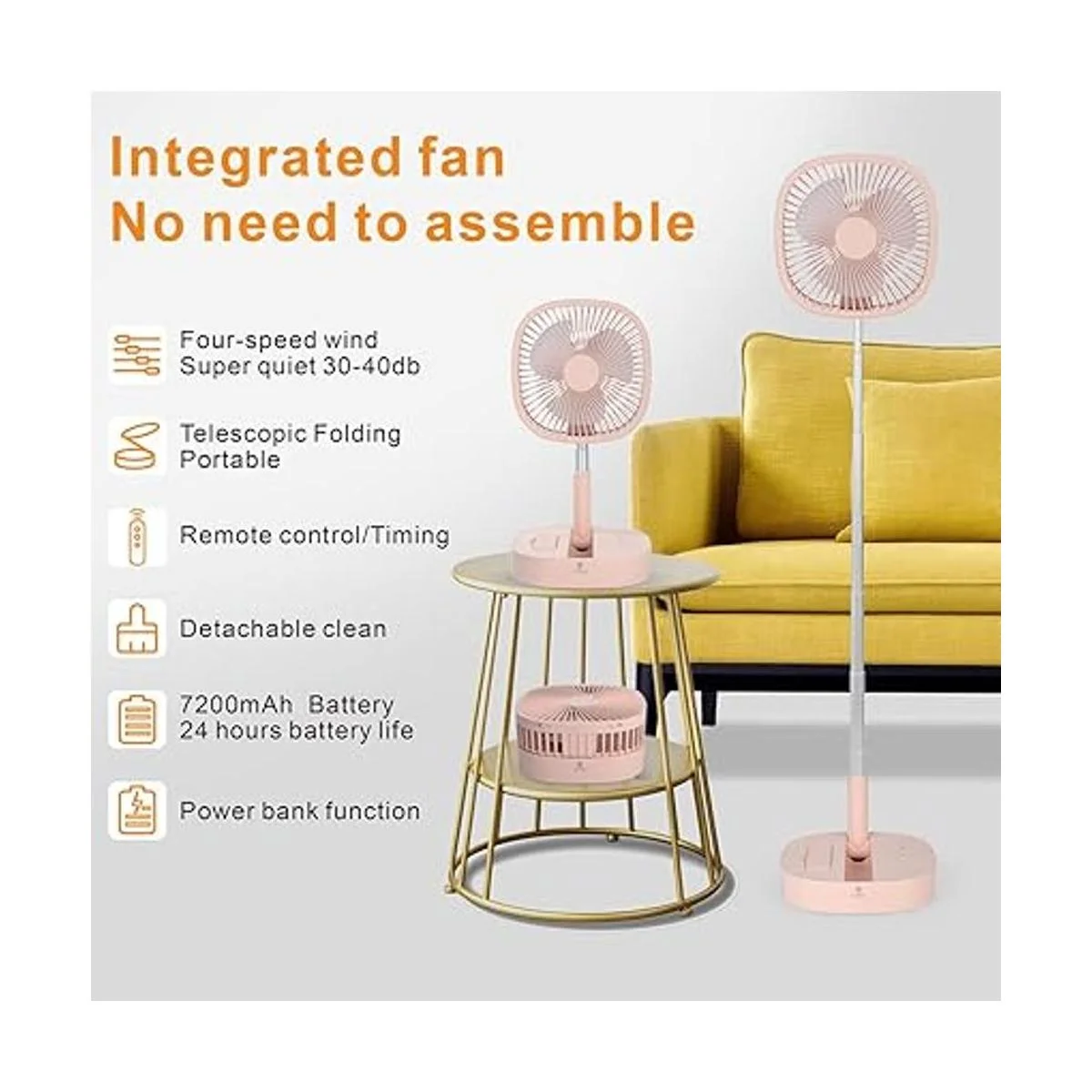 Ventilador de pedestal portátil, ventilador de pie plegable, ventilador de escritorio plegable, uso inalámbrico, batería recargable de 7200 mAh, control remoto, telescópico de 4 velocidades para el hogar, cocina, campamento al aire libre (rosa)