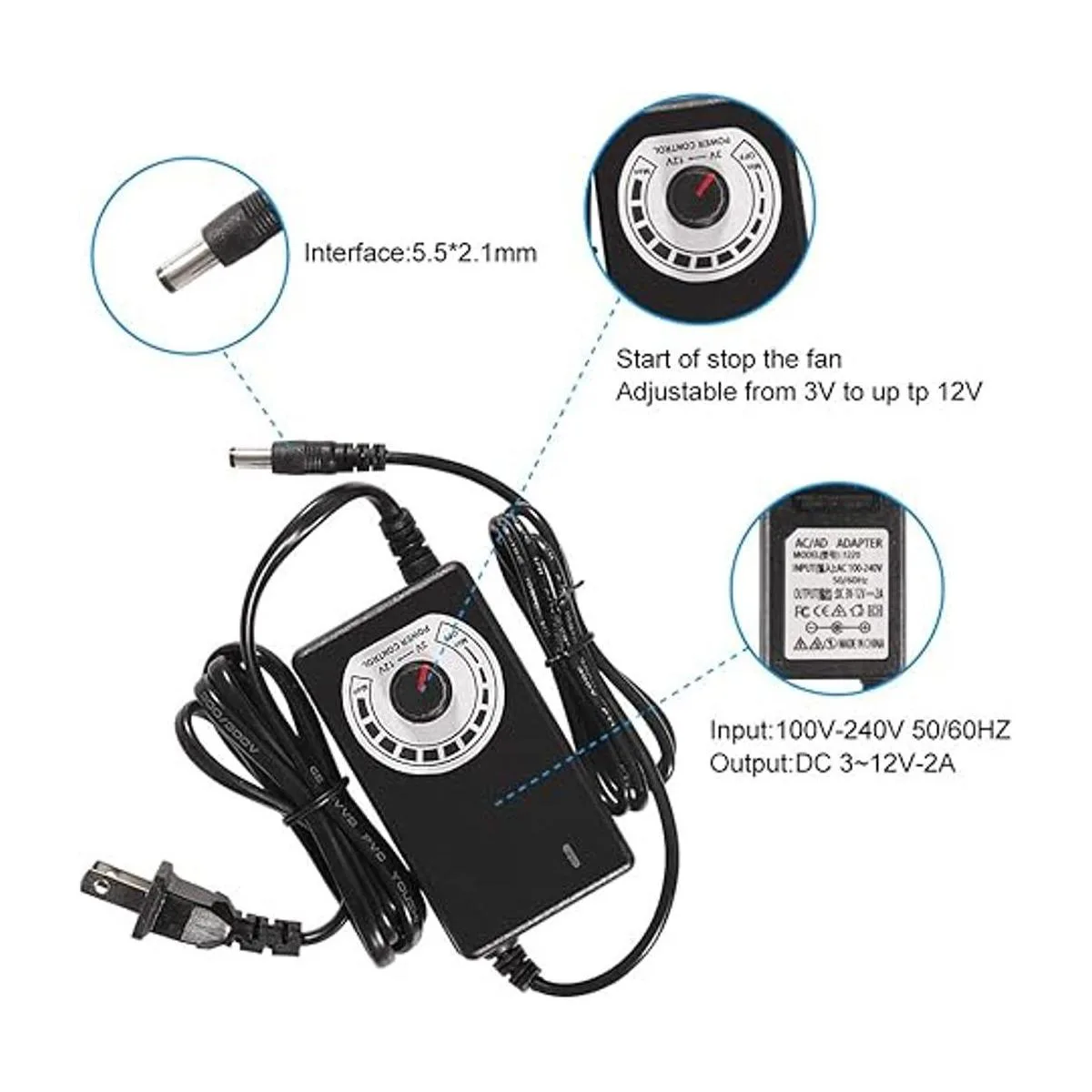 El ventilador de 110 V220 V cuenta con un controlador de varias velocidades para ajustar la velocidad del ventilador a niveles óptimos de ruido y flujo de aire, velocidad de ventilador ajustable de 3 V a 12 V, puede apagar el ventilador.
