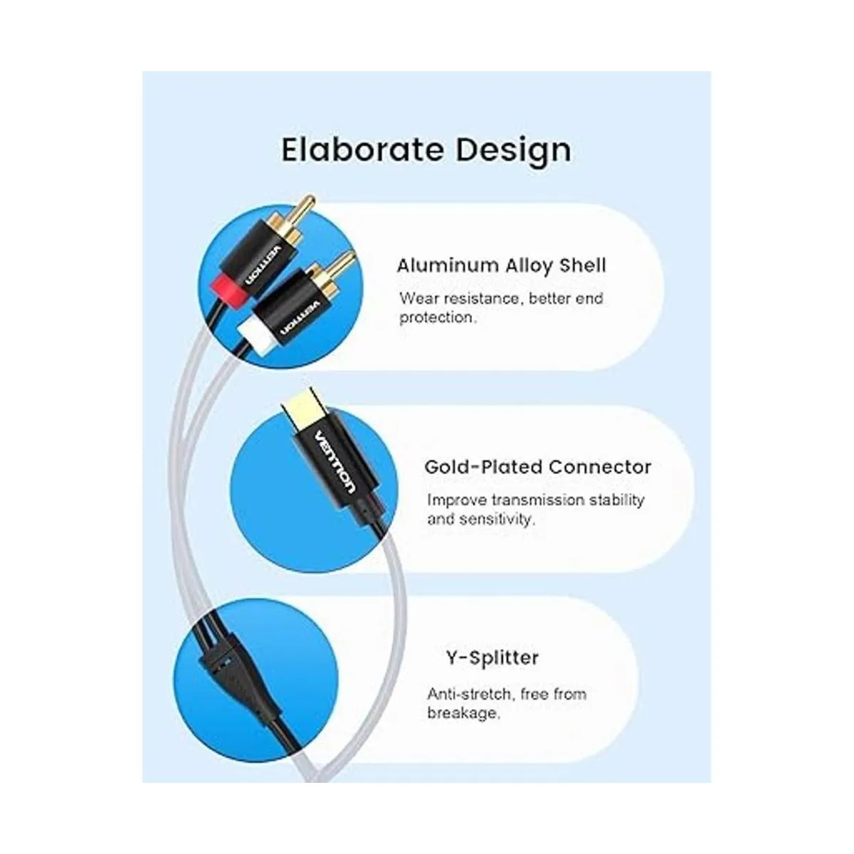 VENTION Cable de audio USB C a 2, cable de audio RCA tipo C a RCA macho a macho, divisor de audio USBC 2RCA Jack para teléfono, tableta, cine en casa, DVD, amplificador, altavoz, estéreo de coche 5 pies4.9 ft