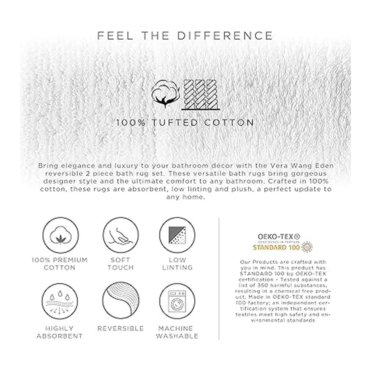 Vera Wang Alfombras de baño, decoración de baño de lujo, alfombra de baño de algodón suave y Aboserbent (Eden White, 2 piezas)