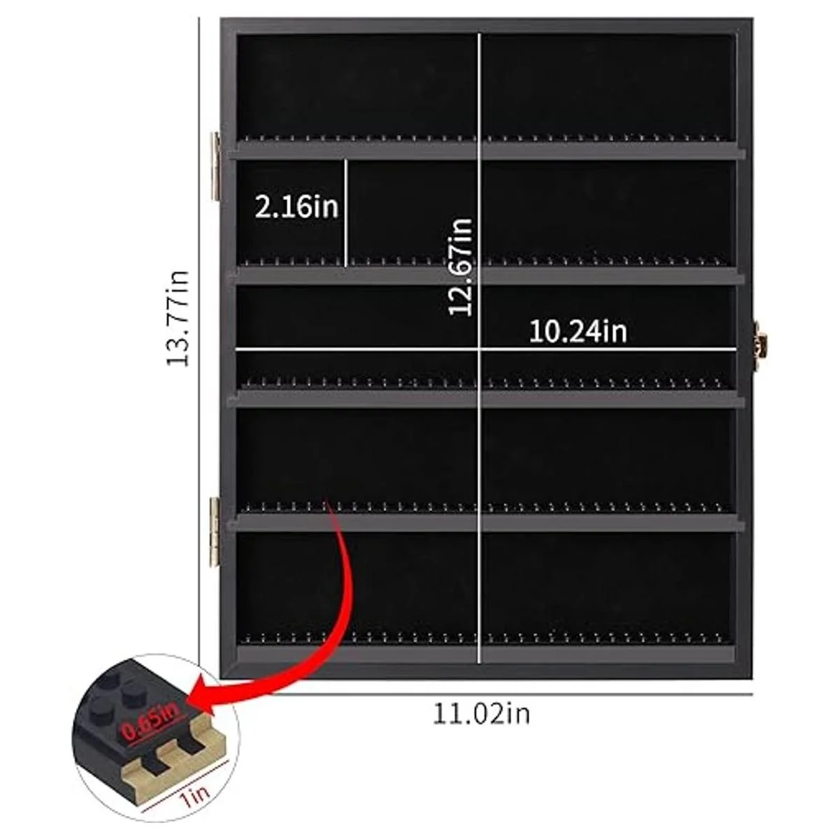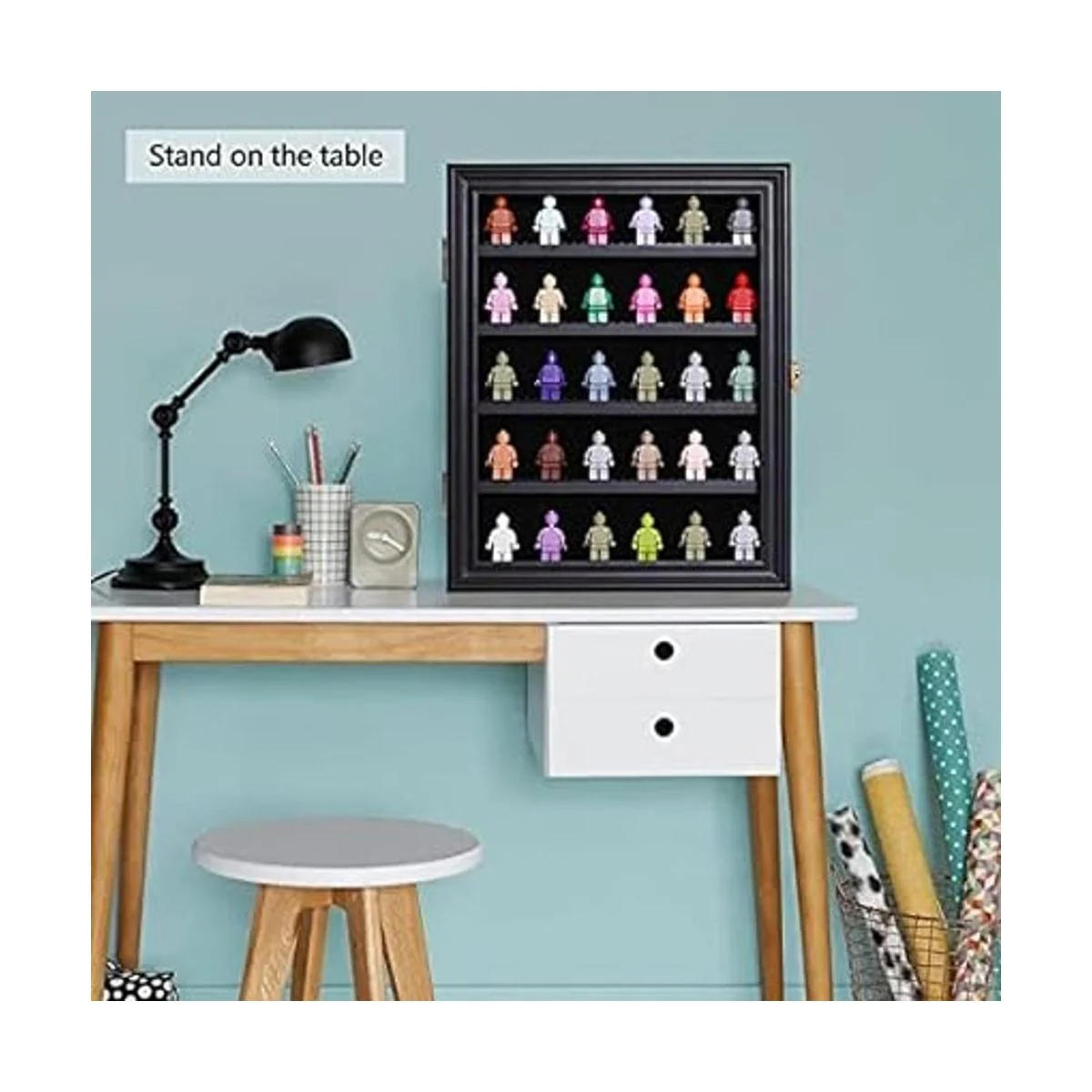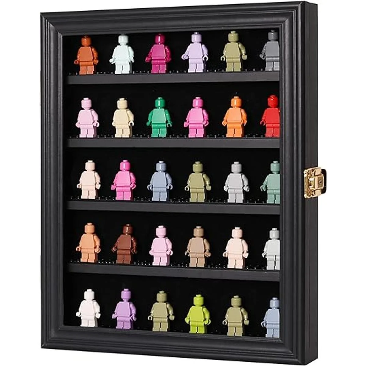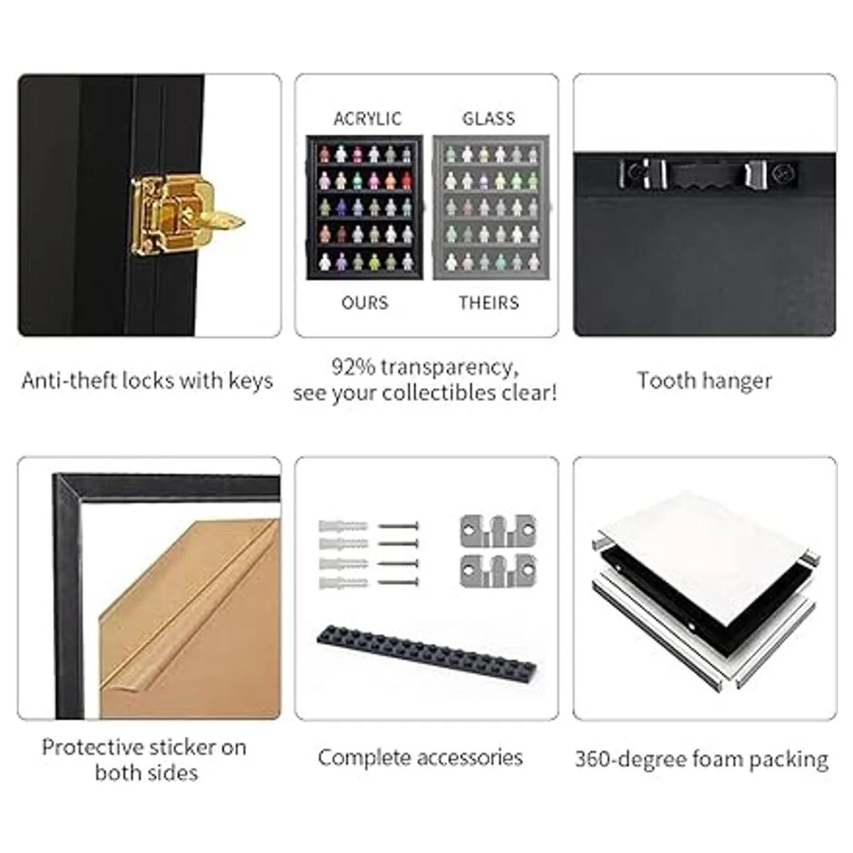 VERANI Minifigures Vitrina en miniatura coleccionable para montaje en pared, figura Curio gabinete con protección UV, anti decoloración, 92 transparente, para objetos pequeños, estantes extraíbles con bloqueo, color negro