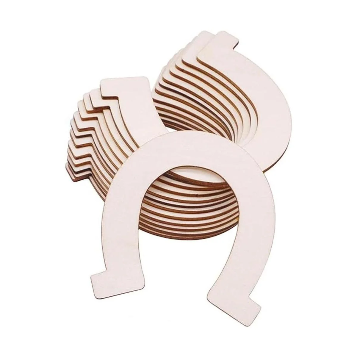 Cantidad del paquete: 36 paquetes de recortes de madera en forma de herradura, cantidad suficiente para tu decoración o manualidades.
