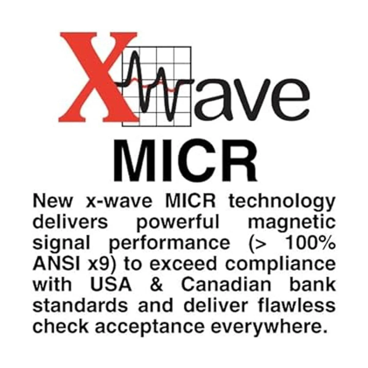 La nueva tecnología XWave MICR ofrece un potente rendimiento de señal magnética 100 ANSI x9 para superar el cumplimiento de las normas bancarias de Estados Unidos y Canadá y ofrecer una aceptación impecable de cheques en todas partes.