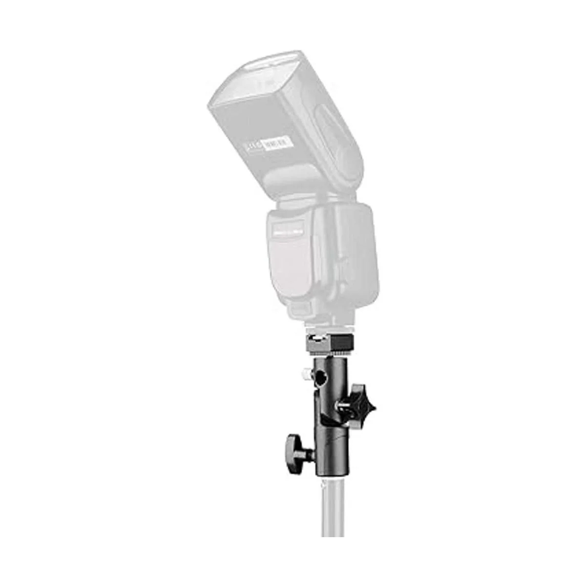 Soporte de luz Viene con un tornillo de rosca de 1/4 pulgadas a 3/8 pulgadas, que se puede convertir por ti mismo, permite que el soporte de luz se fije a un trípode o soporte de luz. Nota: recibirás el soporte de flash con el tornillo. Suelta el tornillo para obtener rosca de 1/4 o rosca de 3/8.