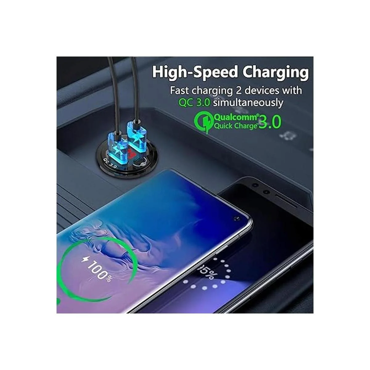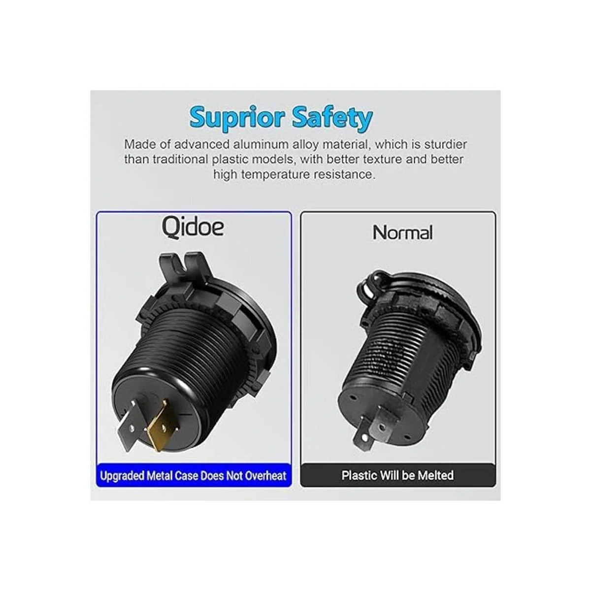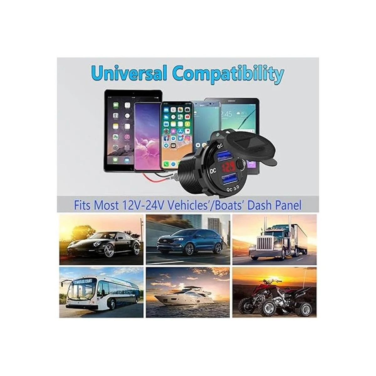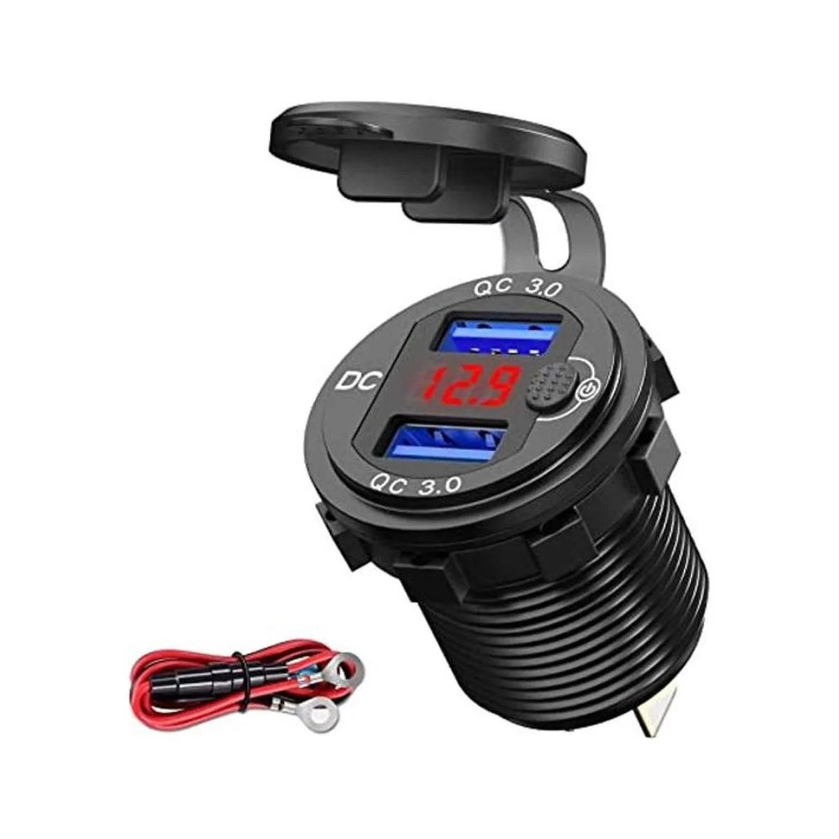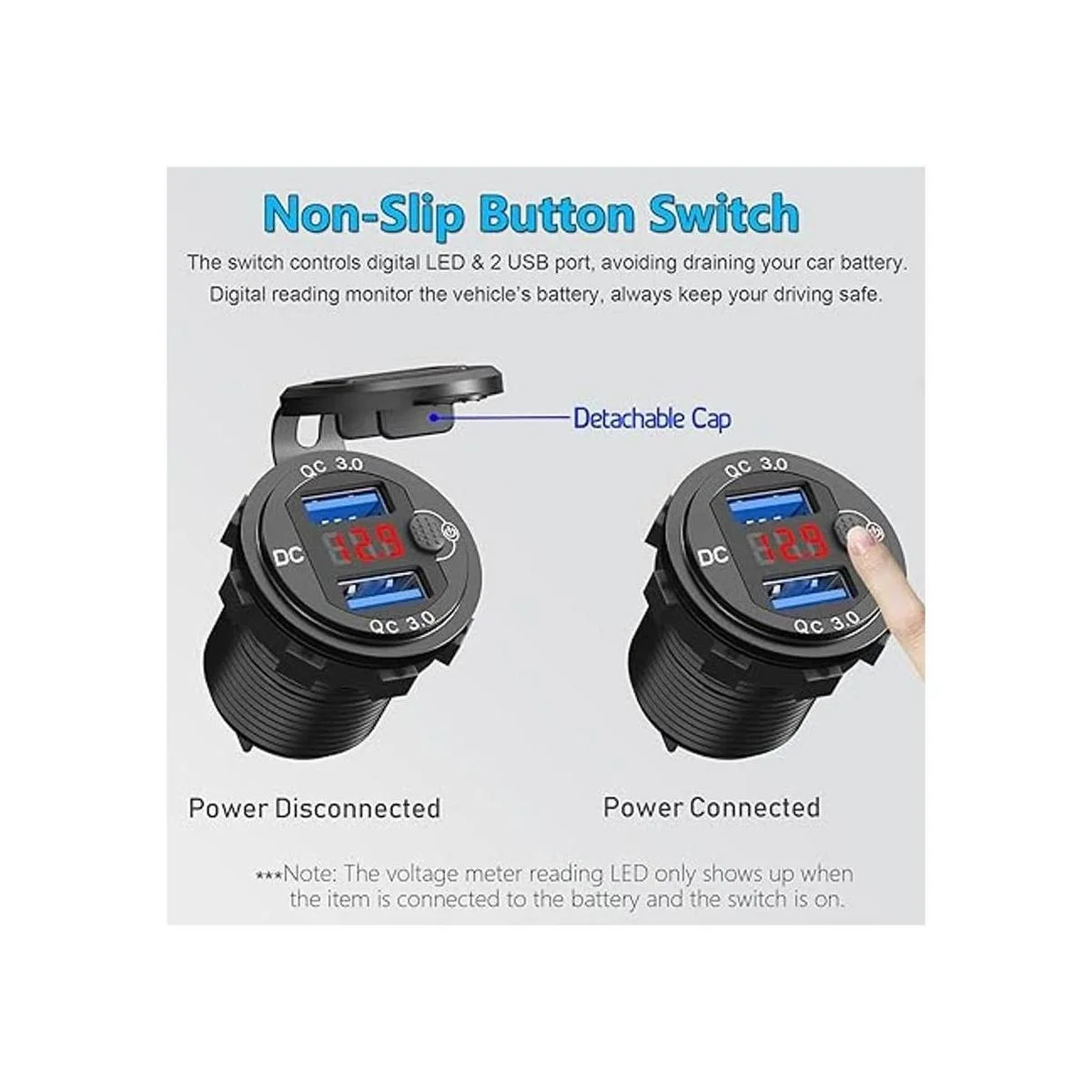 Versión mejorada Cargador de coche USB de carga rápida 3.0 dual de 12 V, enchufe de aluminio con voltímetro digital rojo, toma de coche impermeable con botón de interruptor de alimentación, para lanchas marinas, motocicletas, camiones, carrito de golf, etc