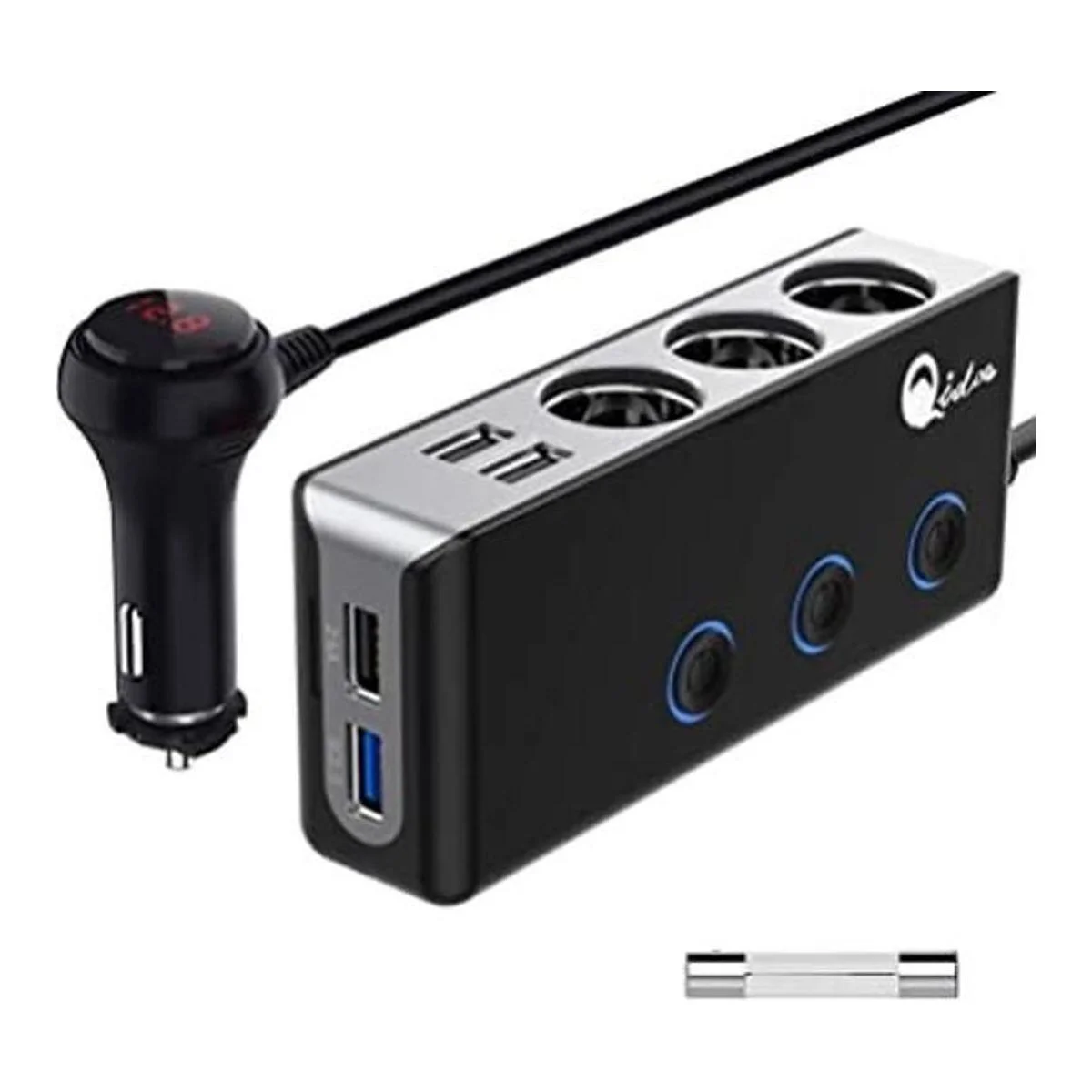 Versión mejorada Divisor de encendedor de cigarrillos 3.0 de carga rápida, Qidoe 12 V24 V, 3 zócalos y 120 W, adaptador de coche de corriente continua con interruptor principal de voltímetro LED, 8.5 A, 4 salidas rápidas USB, tres salidas de encendidoapagado independientes