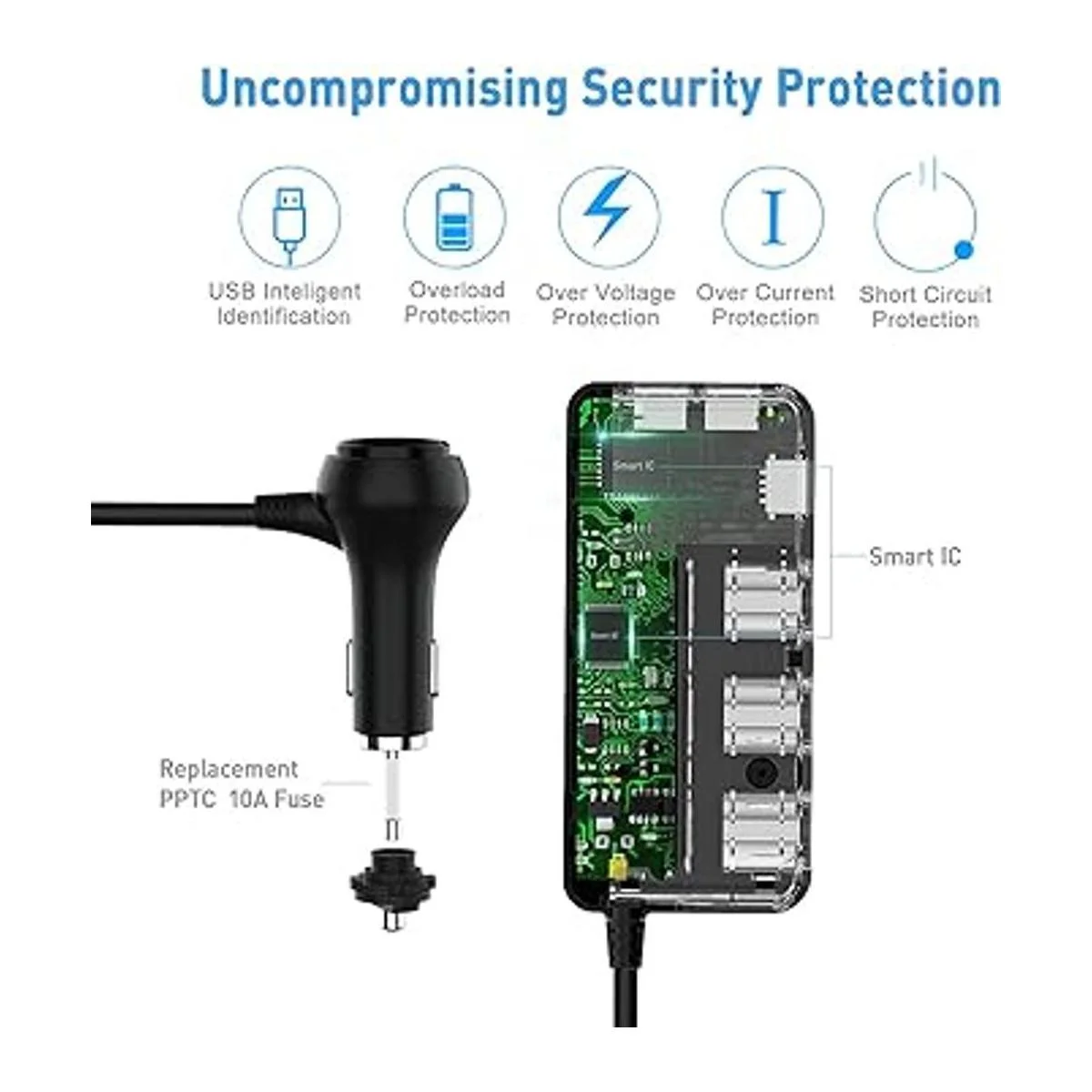 Más enchufes para usar Este cargador de coche extiende el encendedor de cigarrillos de tu coche de 1 a 3 enchufes. Proporciona una potencia total de hasta 120 W, y la potencia máxima de un solo enchufe es de 60 W. Todos los enchufes están fabricados de acuerdo con las normas internacionales, pueden adaptarse a múltiples electrodomésticos de coche como cámara de salpicadero, GPS, navegación por satélite, calentador de asiento, humidificador de coche, ventilador de coche, etc.