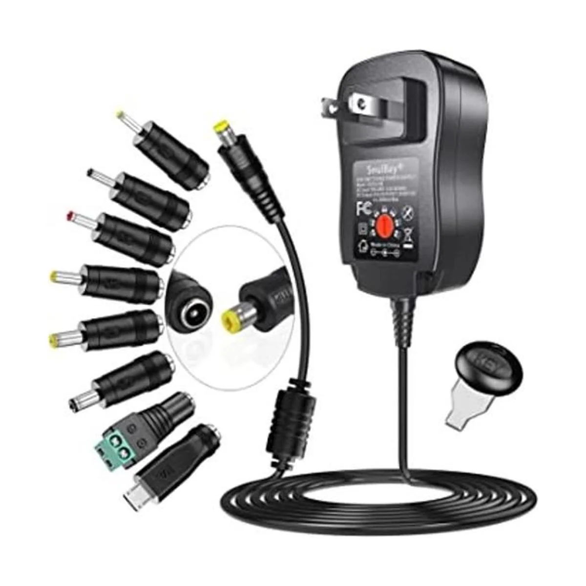 Multivoltaje y múltiples puntas: el voltaje variable es fácil de seleccionar, puedes convertir a diferentes voltajes con facilidad utilizando la tecla proporcionada. Este adaptador de fuente de alimentación tiene 8 puntas de adaptador seleccionables, que pueden ser útiles para varios electrodomésticos.