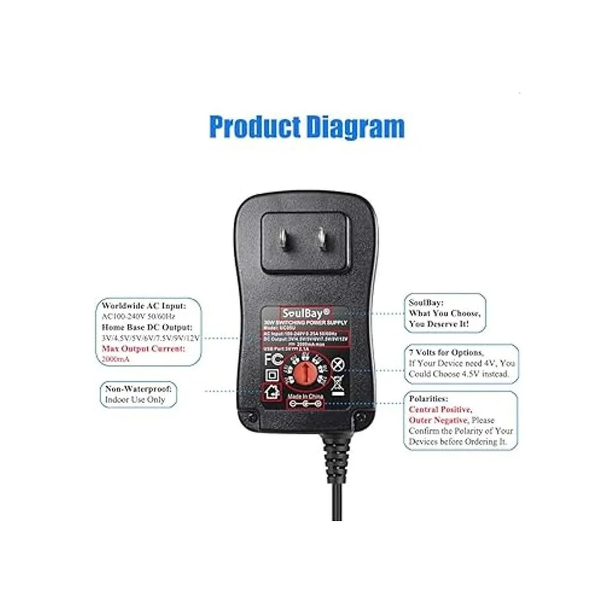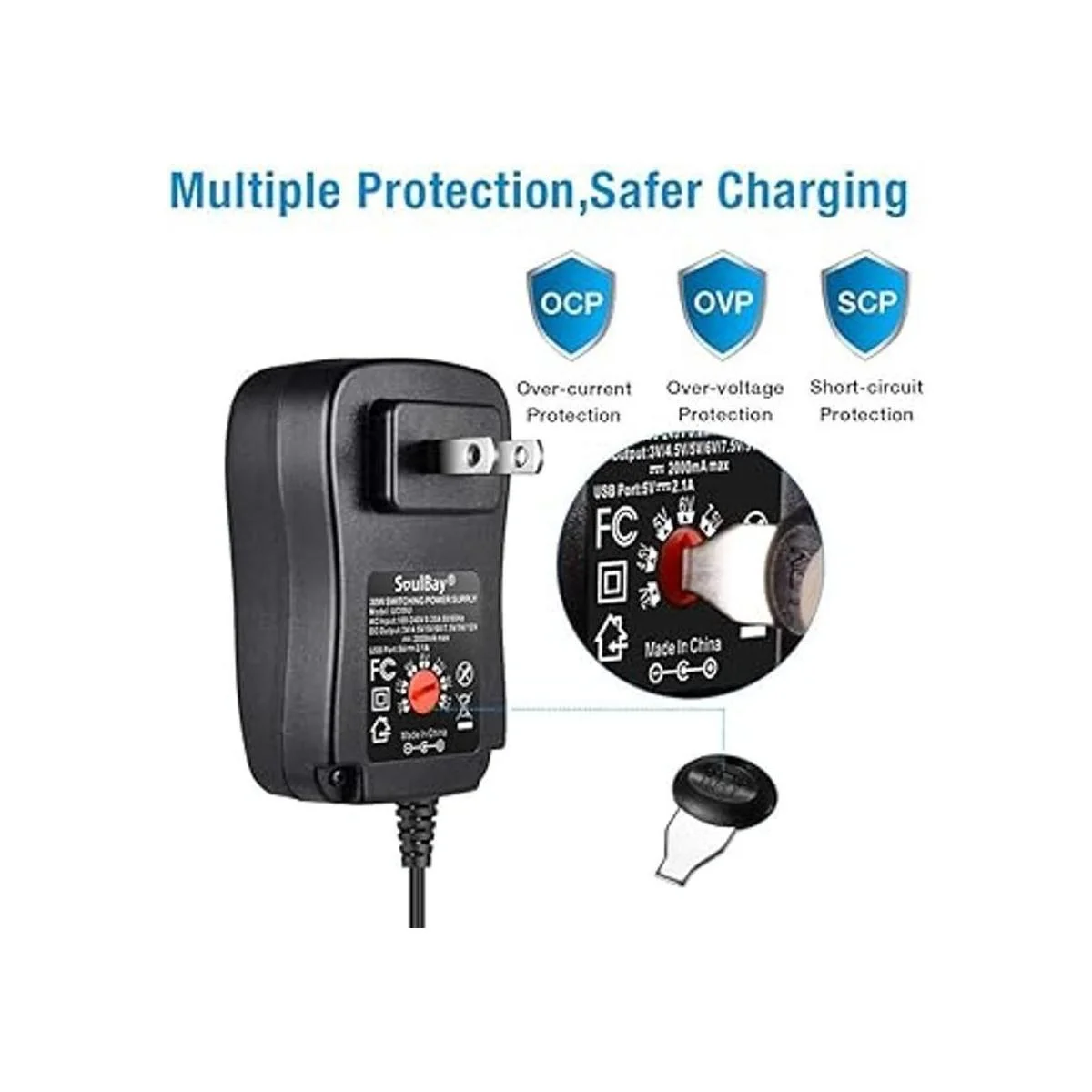 Adaptador universal CA/CC Entrada CA: 100240 V 0.25 A 50/60 Hz, salida CC: 3 V/4.5 V/5 V/6 V/7.5 V/9 V/12 V. Técnica de seguridad avanzada, con protección completa de sobrevoltajes/sobrecorriente/cortocircuitos/sobretemperatura. Compra SoulBay NUEVO
