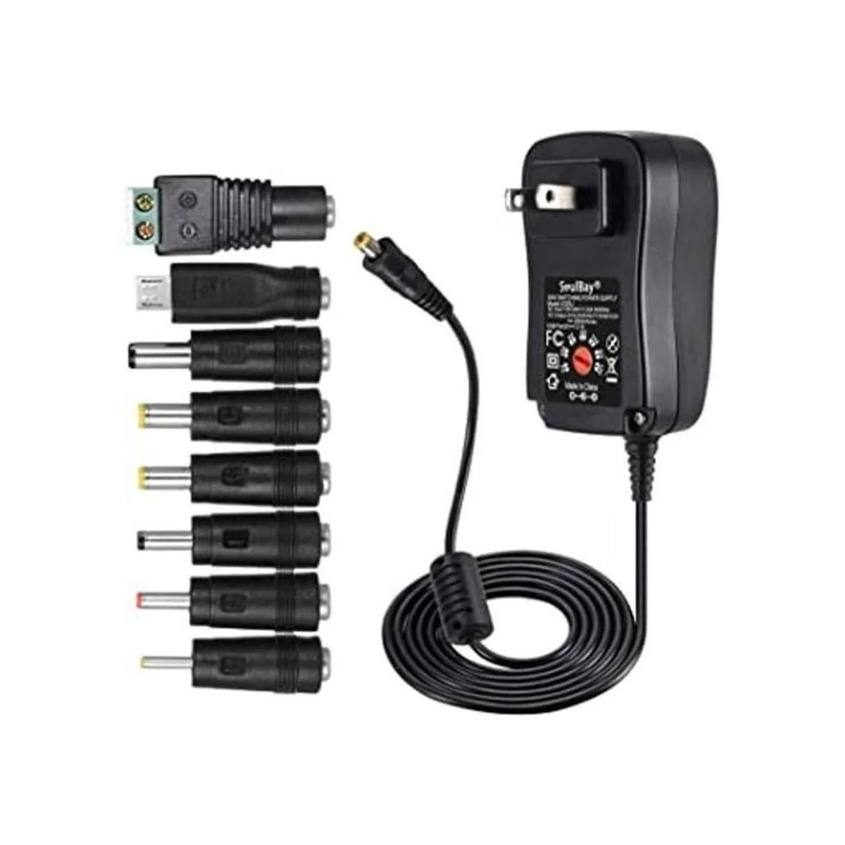 [Versión mejorada] SoulBay Fuente de alimentación conmutada universal de 30 W con 8 puntas de adaptador seleccionables, incluyendo enchufe micro USB, para electrónica doméstica de 3 V a 12 V y tira LED, 2000 mA máximo