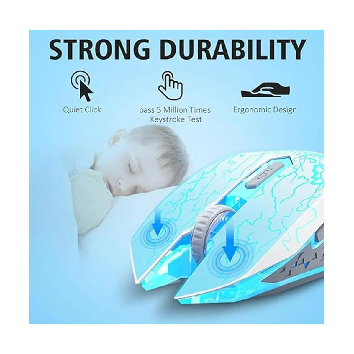 Clic duradero y silencioso: el mouse inalámbrico pasa más de 500000 pulsaciones de teclas, garantiza un funcionamiento prolongado y preciso. Tanto los botones izquierdo como derecho se adoptan con un diseño silencioso, los clics silenciosos liberan tu preocupación por molestar a los demás y te mantienen centrado en jugar y trabajar.