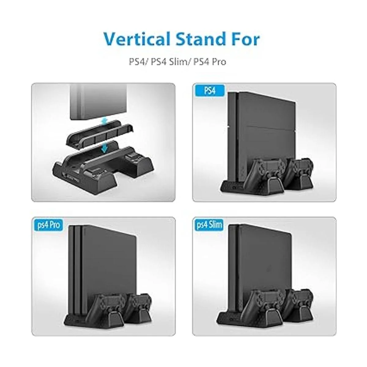 Vertical Stand for PS4PS4 SlimPS4 Pro Cooling Fan with PS4 Charger Controller Charging Station with Game Storage Black