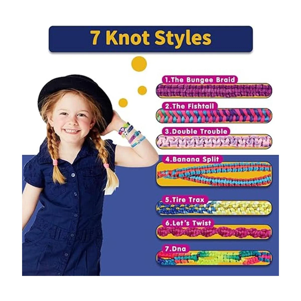 Posibilidades ilimitadas: crea tus propios estilos. Haz hasta 12 pulseras, con 7 estilos de nudo y 12 diseños diferentes de adhesivos de moda para las preferencias de las niñas.