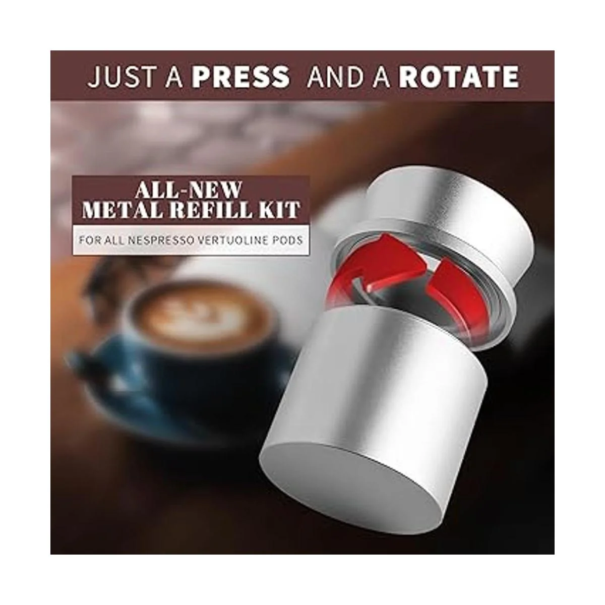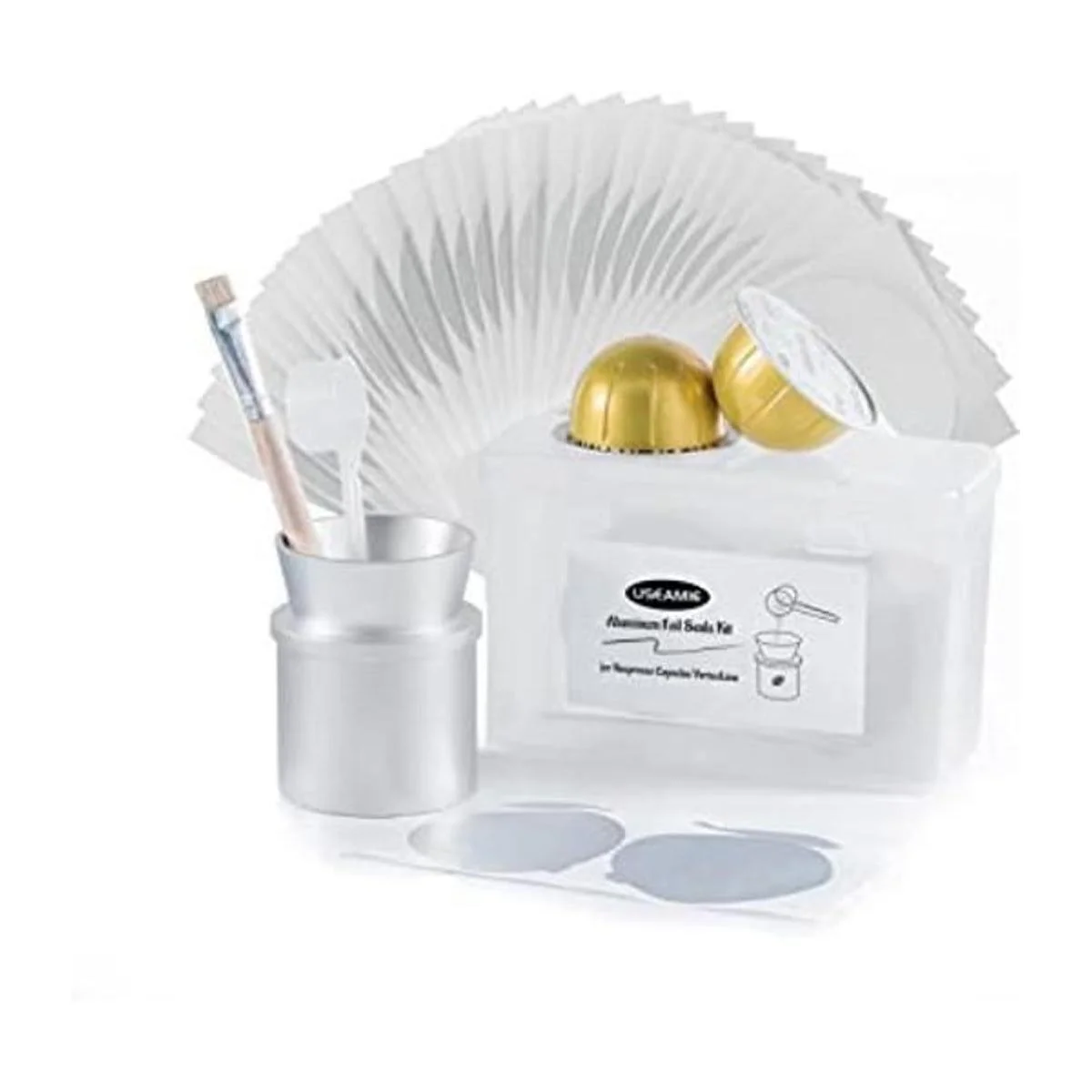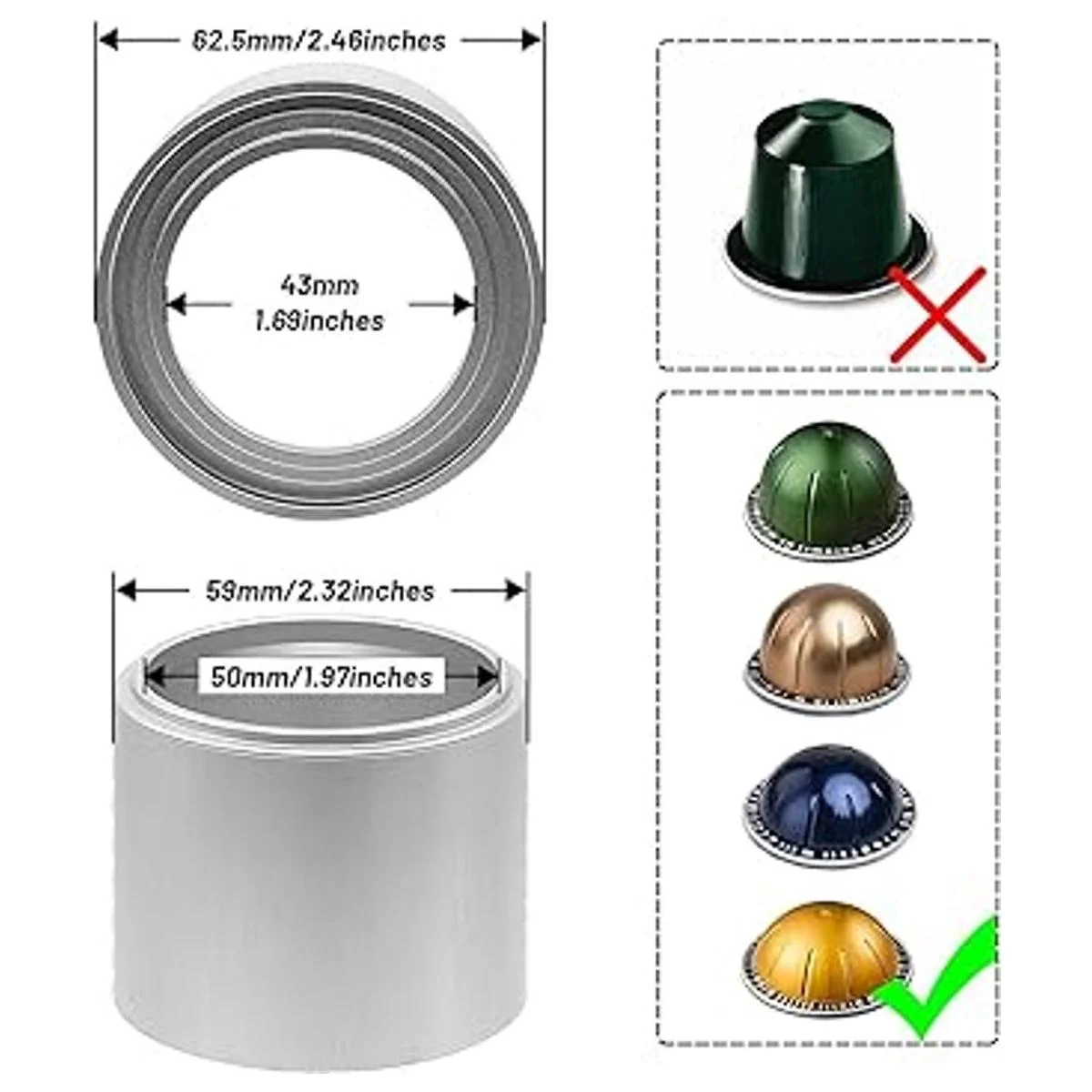 Vertuo Kit de repuesto de cápsula de metal reutilizable de 100 piezas de sellos de aluminio para Nespresso Vertuoline con cepillo, cuchara, soporte