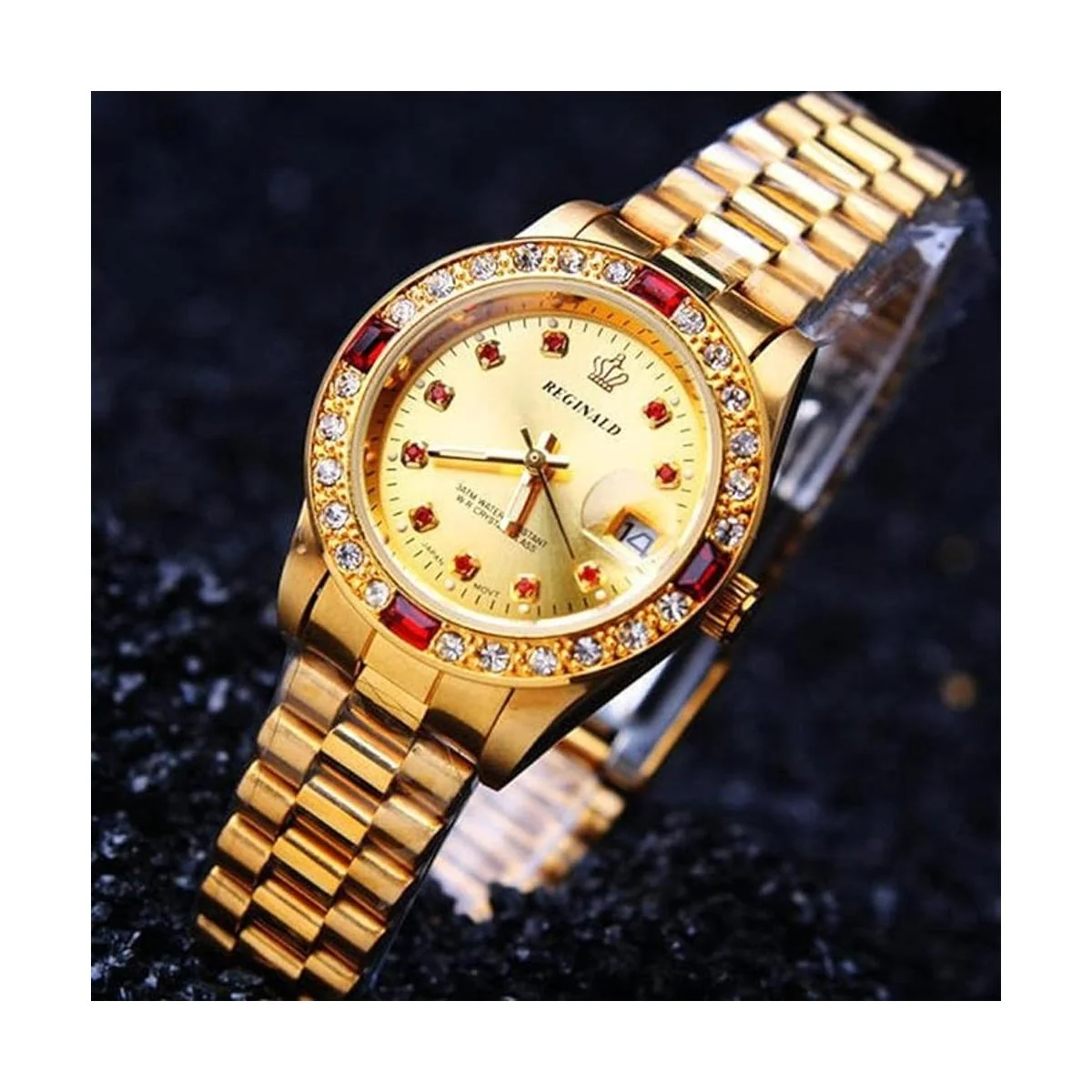 Vestido de lujo Rhinestone acero inoxidable impermeable cuarzo calendario mujeres o hombres luminoso reloj casual