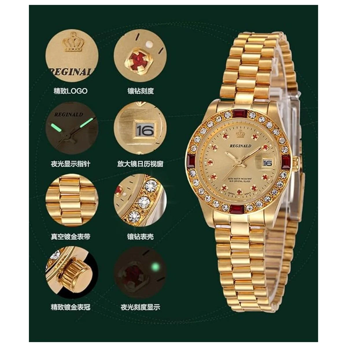 Los exquisitos diamantes de imitación adornan la esfera, lo que te lleva a experimentar tendencias de moda de lujo.