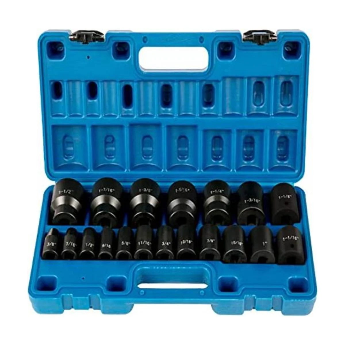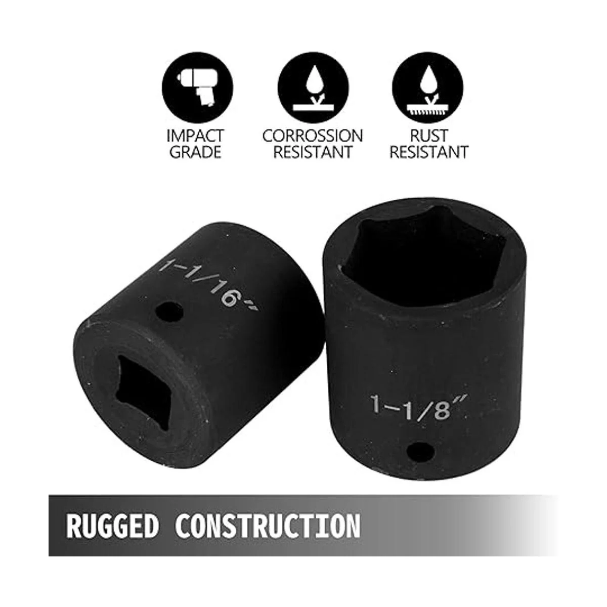 19 llaves incluidas: este juego de llaves de vaso de impacto de 1/2 pulgada ahorra esfuerzo viene con 19 llaves de vaso de impacto: 3/8, 7/16, 1/2, 9/16, 5/8, 11/16, 3/4, 13/16, 7/8, 15/16, 11/16, 11/8. 13 / 16.0 in, 1.2 in, 1.2 in, 1.5 in, 1.5 in, 1.5 in.