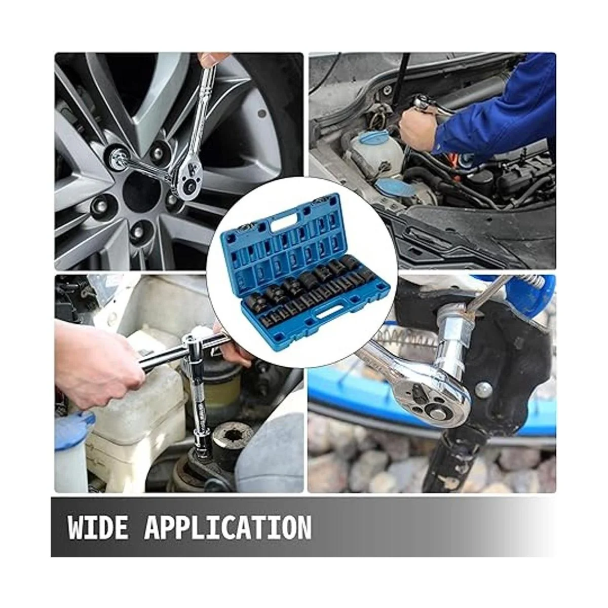 Compacto y portátil: el juego de llaves de vaso de impacto de 1/2 pulgadas incluye un trinquete de acero y una caja de almacenamiento resistente para organización y transporte, lo que hace de este un gran grupo de enchufes para mecánicos.
