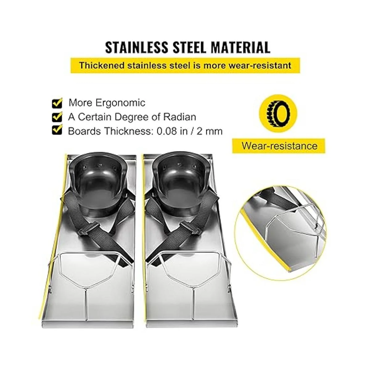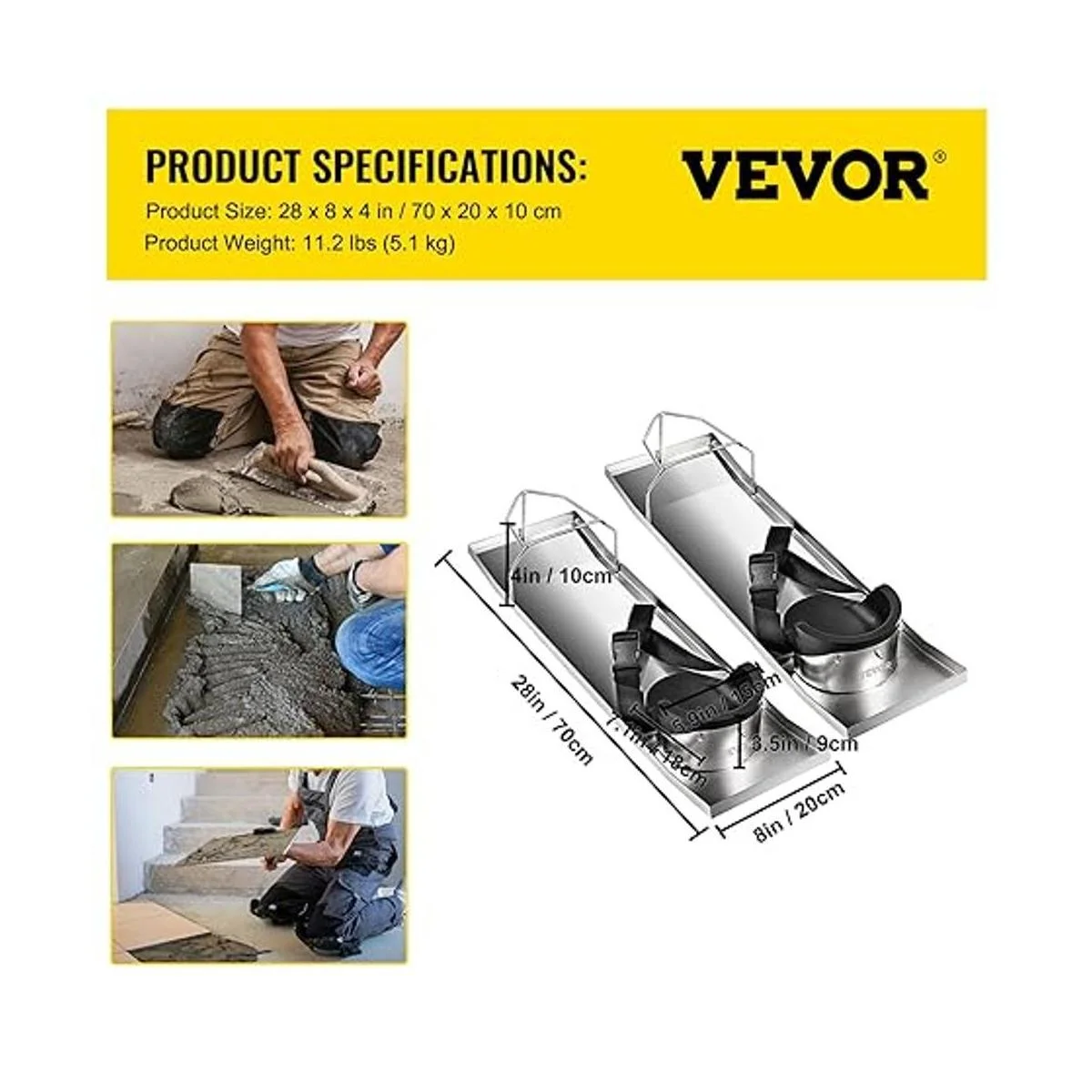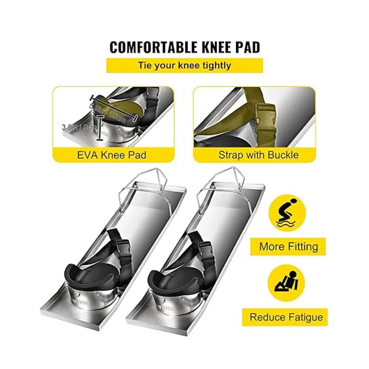 VEVOR Rodilleras de hormigón deslizantes, de 28 x 8 pulgadas, de acero inoxidable, con rodillas, deslizadores de hormigón, par de deslizadores móviles con rodilleras de hormigón y correas de tabla para acabado de hormigón