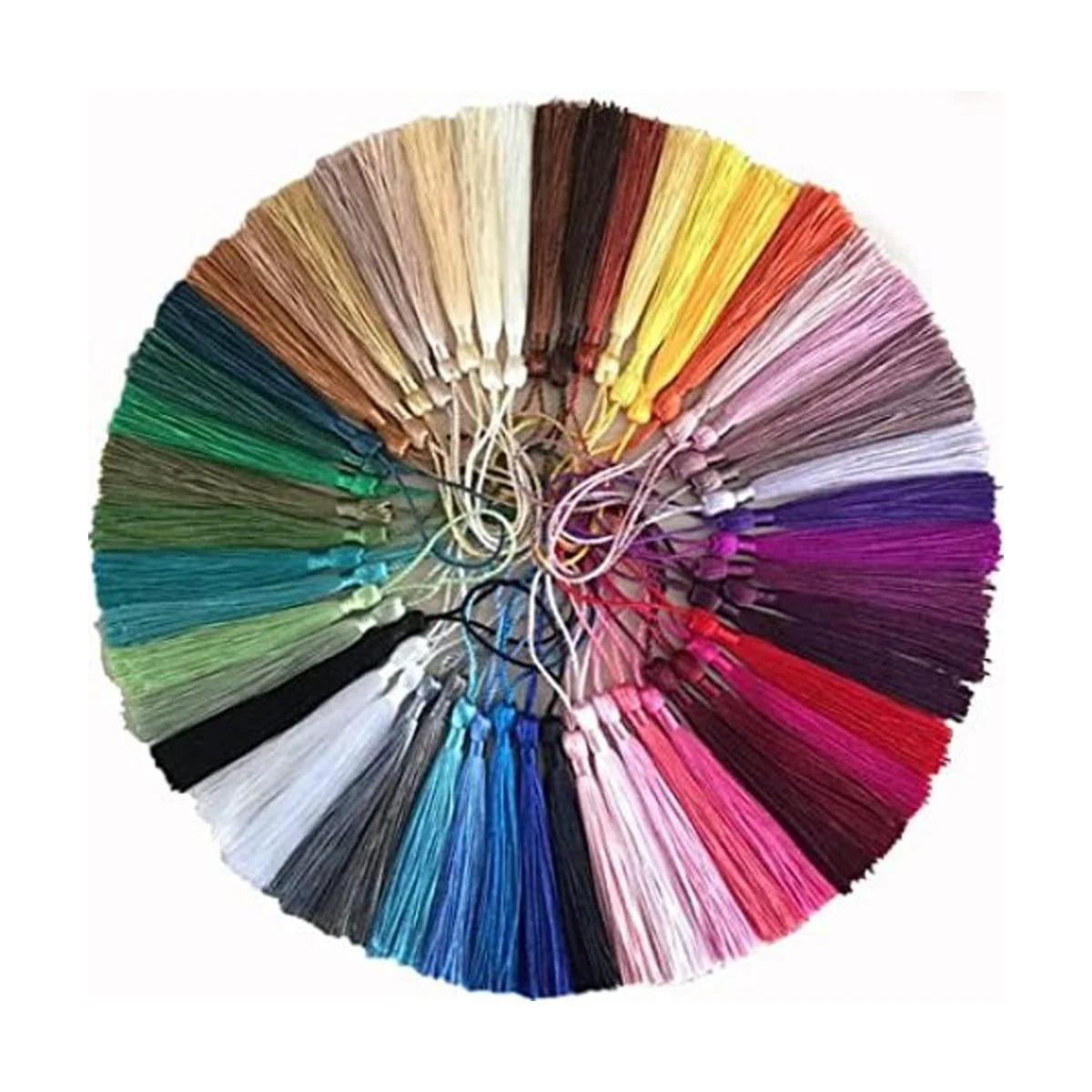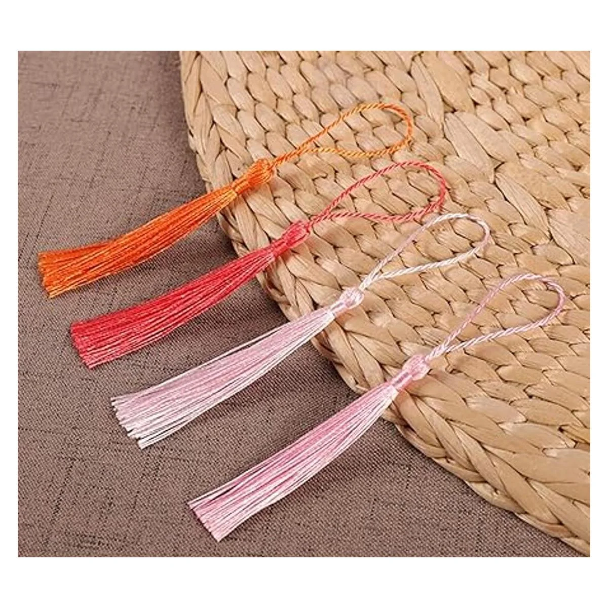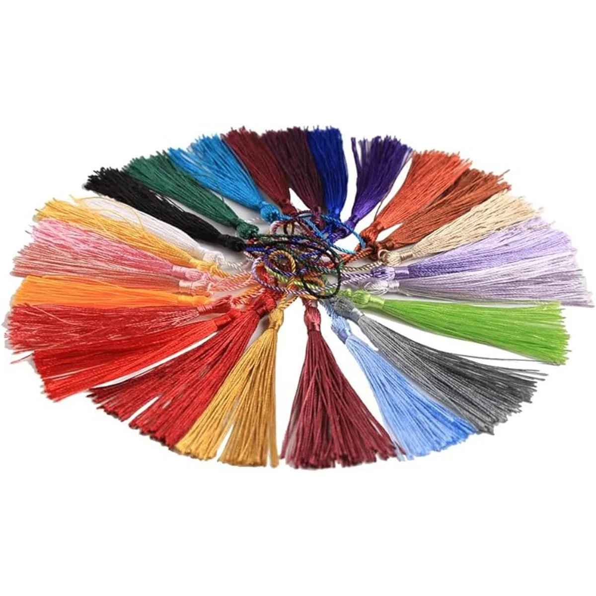 VEYLIN 100 borlas pequeñas artesanías hechas a mano, mini marcador sedoso con lazo para hacer joyas 5.1 in