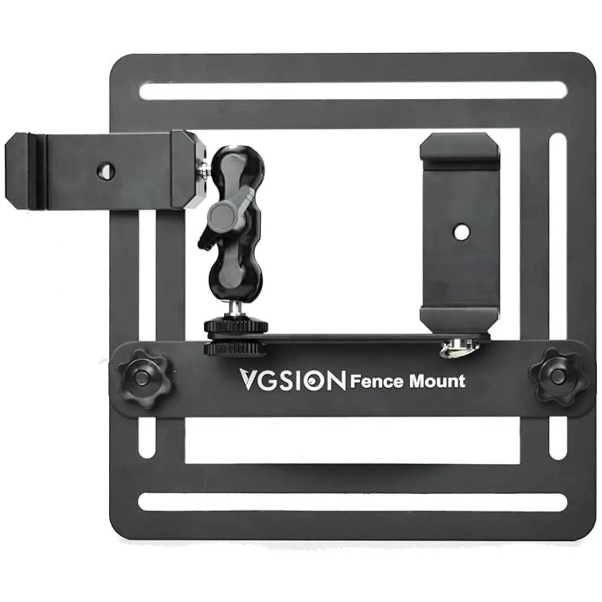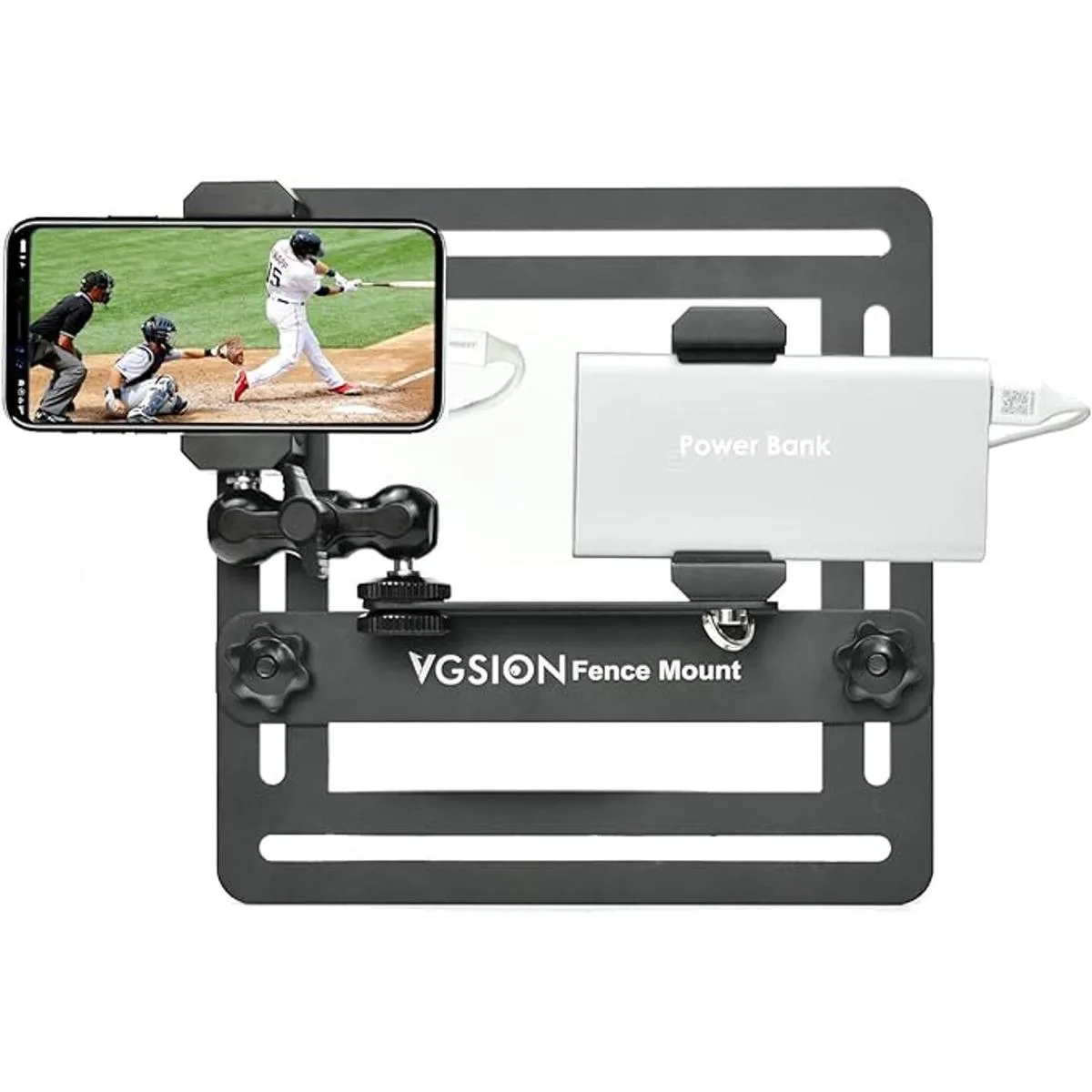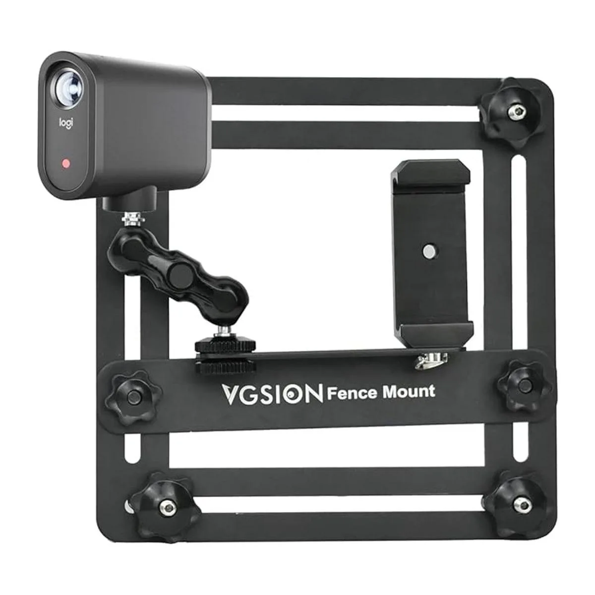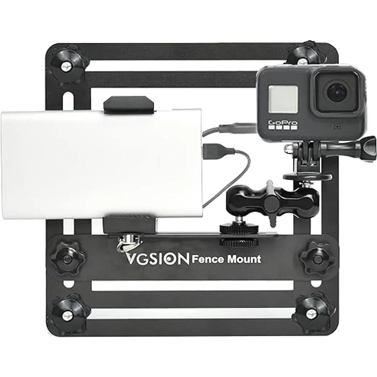 VGSION Soporte de valla de aluminio para teléfono celular cámara de acción para iPhone, Mevo Start, GoPro con dos clips para teléfono, ángulo ajustable, compatible con grabación mientras se carga