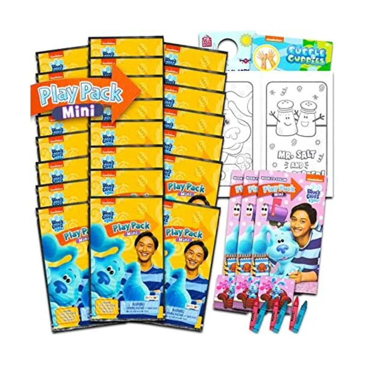 Blues Clues Juego de mini recuerdos de fiesta para niños, paquete con 24 mini paquetes de juego de pistas azules Grab n Go con páginas para colorear, calcomanías y más suministros de fiesta de cumpleaños de Blue Clues.