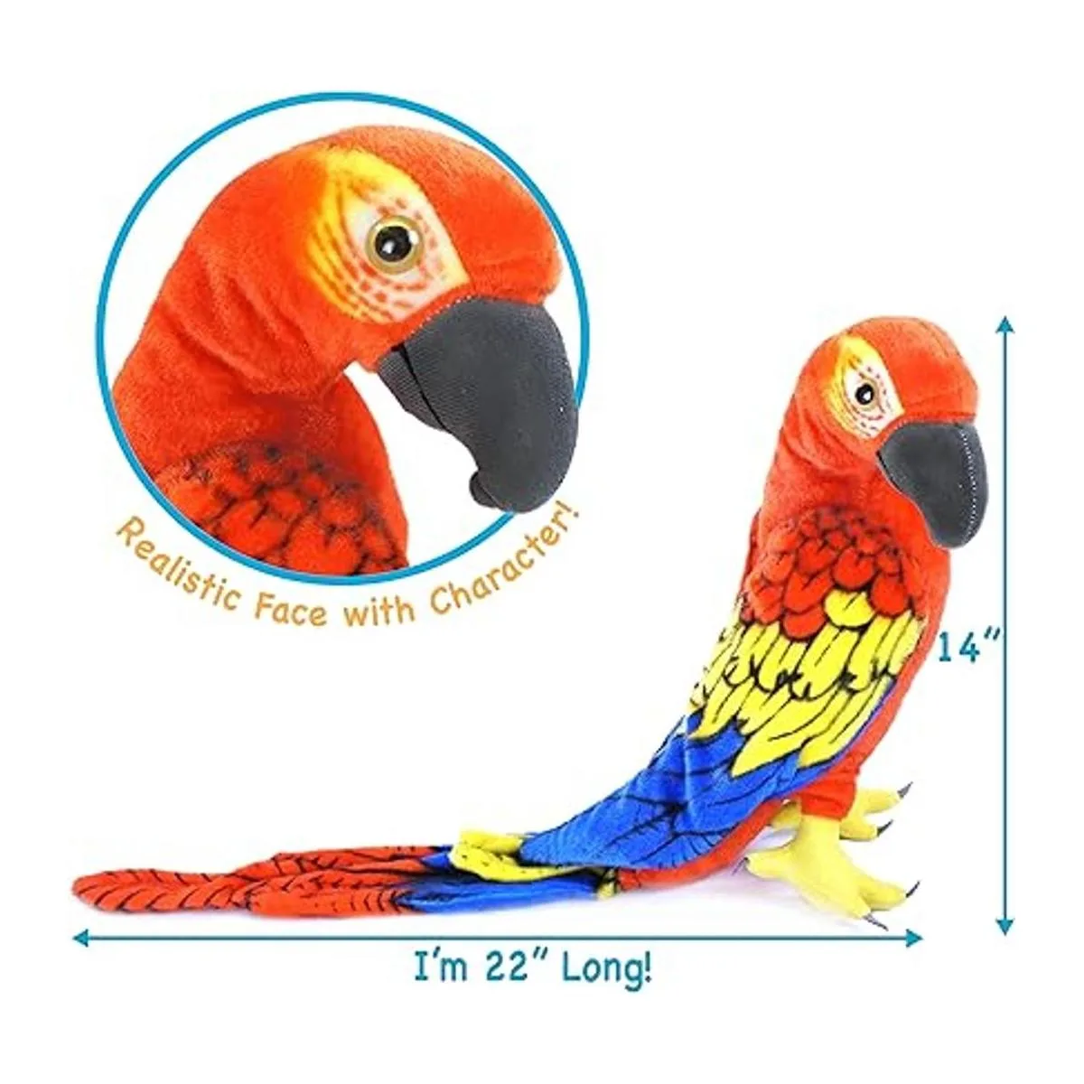 VIAHART Miguelita La guacamaya, 14 pulgadas medidas de cola no incluidas. Pajarito de peluche grande de Loro por Tiger Tale Toys