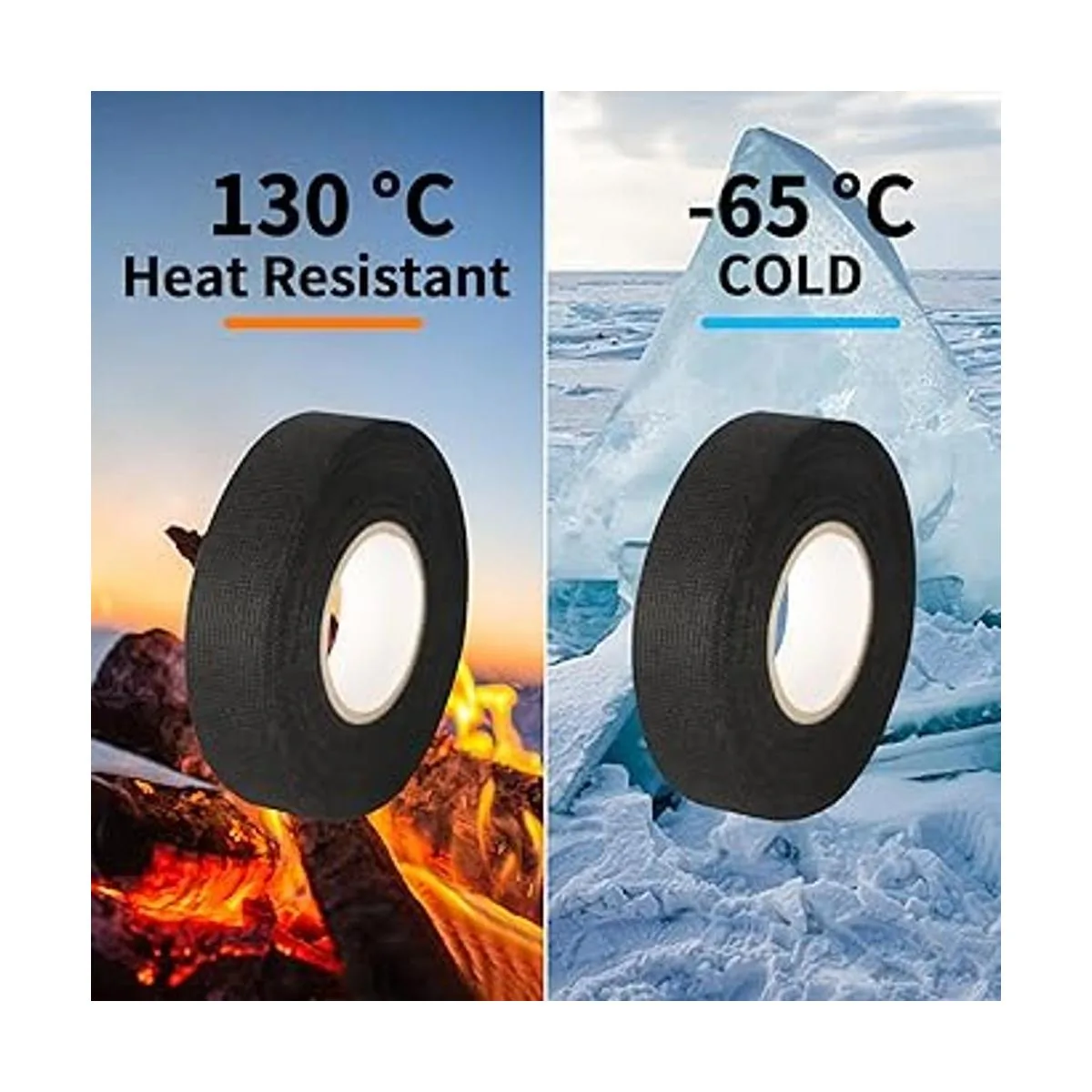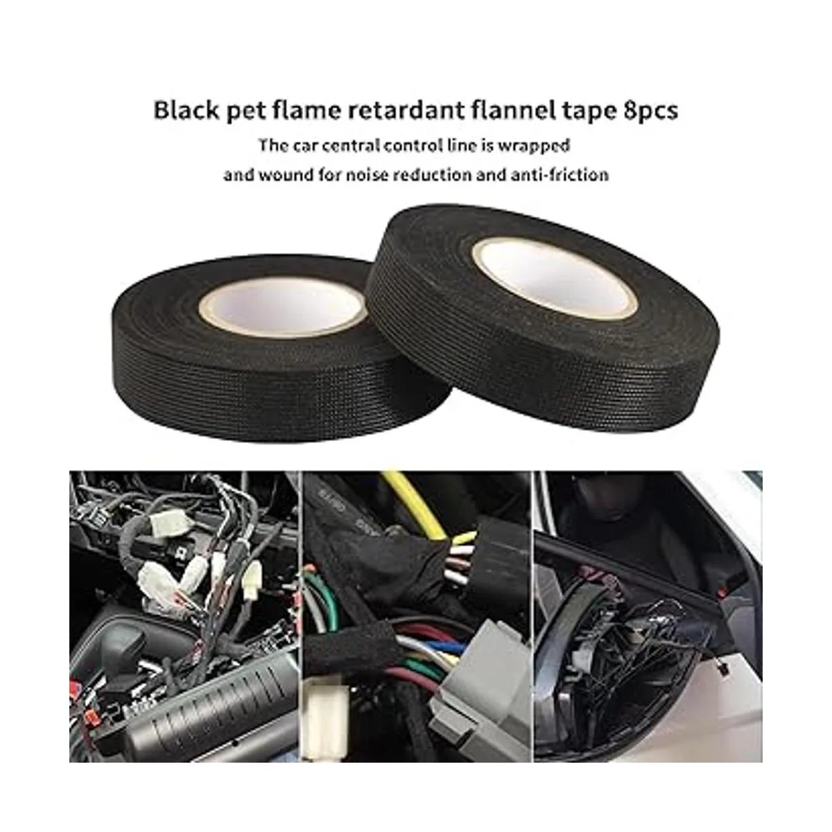 Viaky Paquete de 8 cintas eléctricas negras de tela automática, 49.2 pies, ignífuga, antiabrasión, alta temperatura, arnés de cables de tela adhesiva para motor, eléctrico, aislamiento y amortiguación de ruido