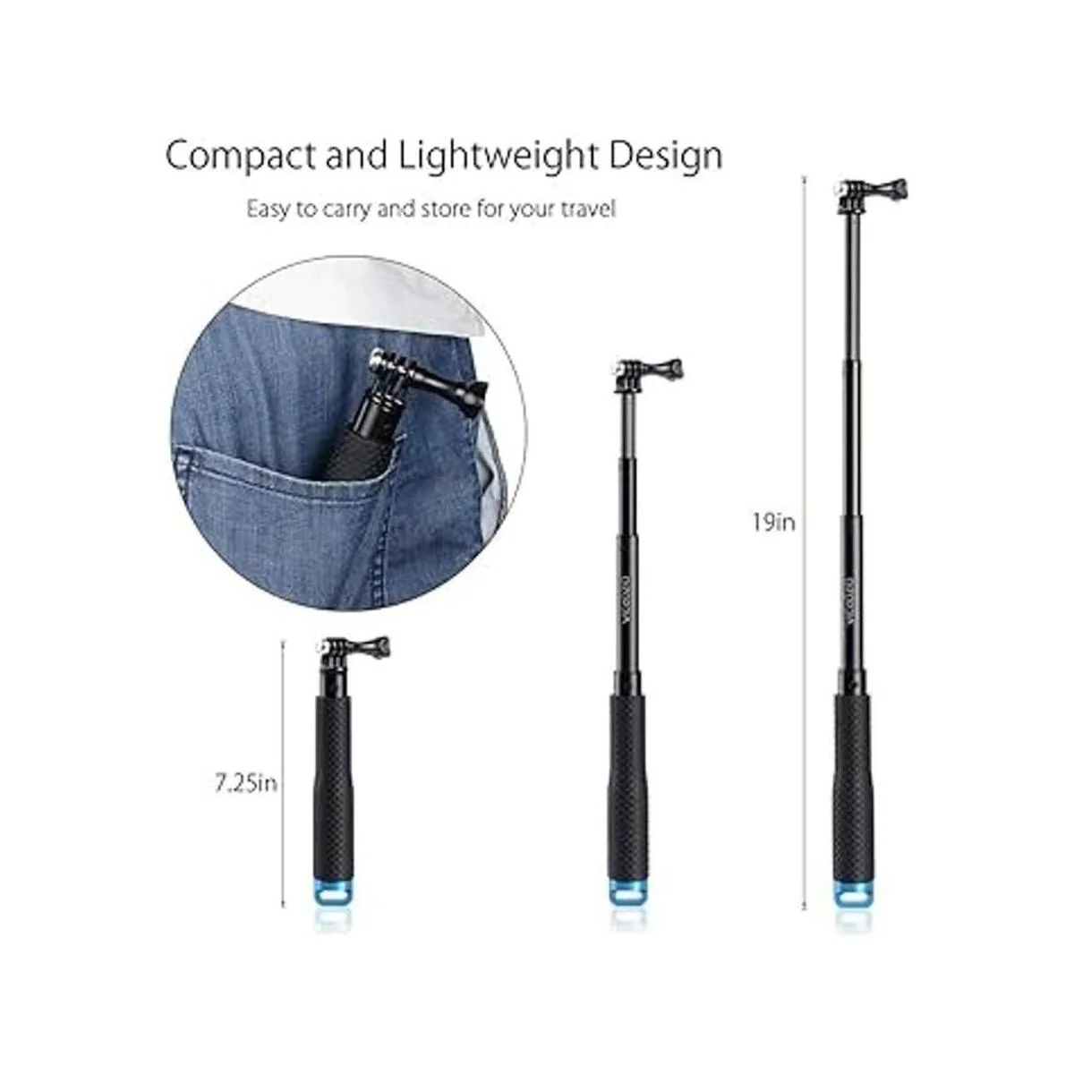 Vicdozia Barra de extensión para selfie de 19 pulgadas, agarre portátil, impermeable, monopié de mano, ajustable, compatible con GoPro Hero 2018 Hero 10 9 8 7 6 5 4 3 AKASO SJCAM DJI OSMO y más cámaras deportivas