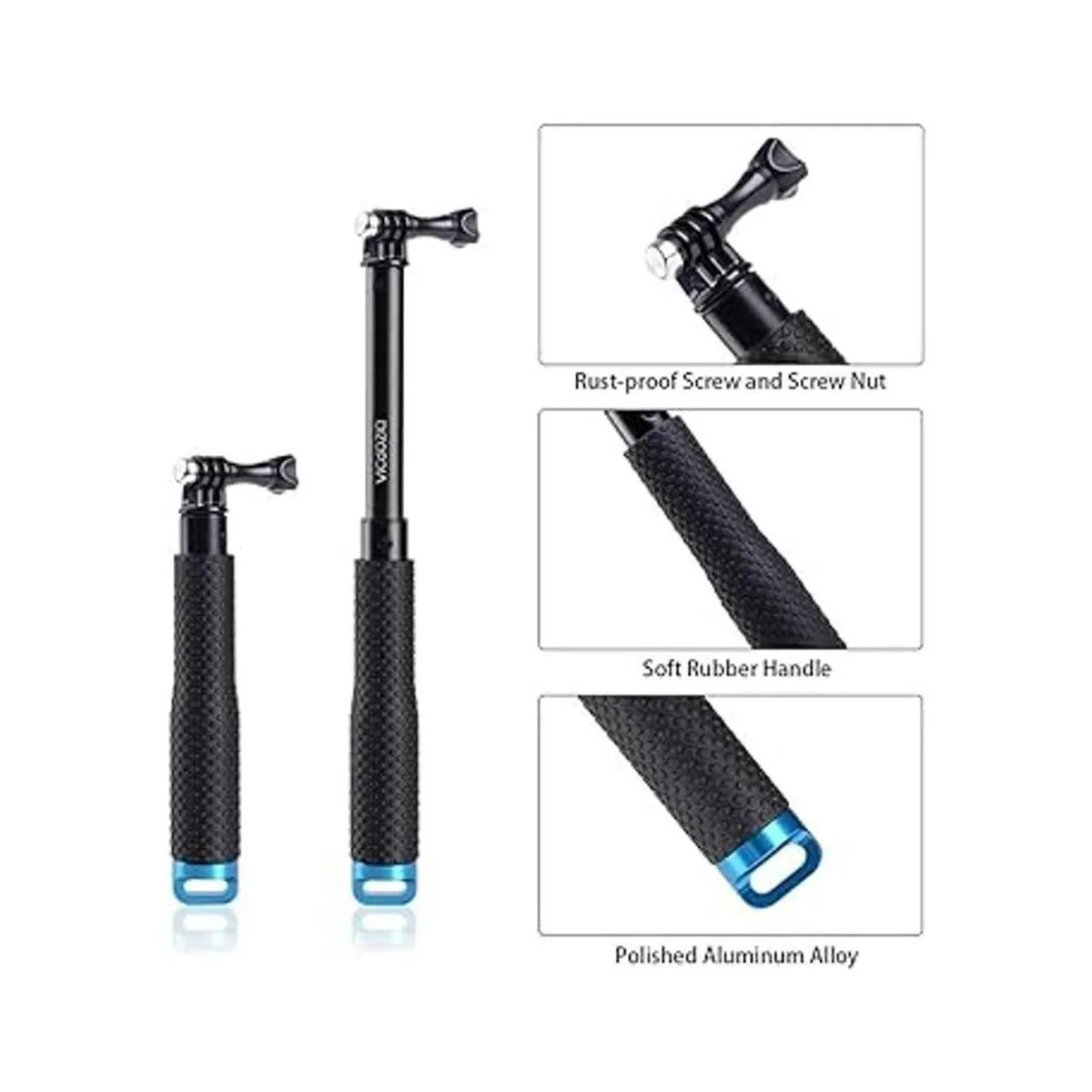 Soporte ideal para cámara deportiva: perfecto para reuniones familiares y amigos, viajes, así como senderismo, snowboard, esquí, surf y kayak/buceo, esnórquel, etc. Se puede usar en el agua; la capacidad de extenderse te permite acercarte a peces y coral mientras permaneces a una distancia segura. Para actividades en interiores y exteriores, o para deportes acuáticos