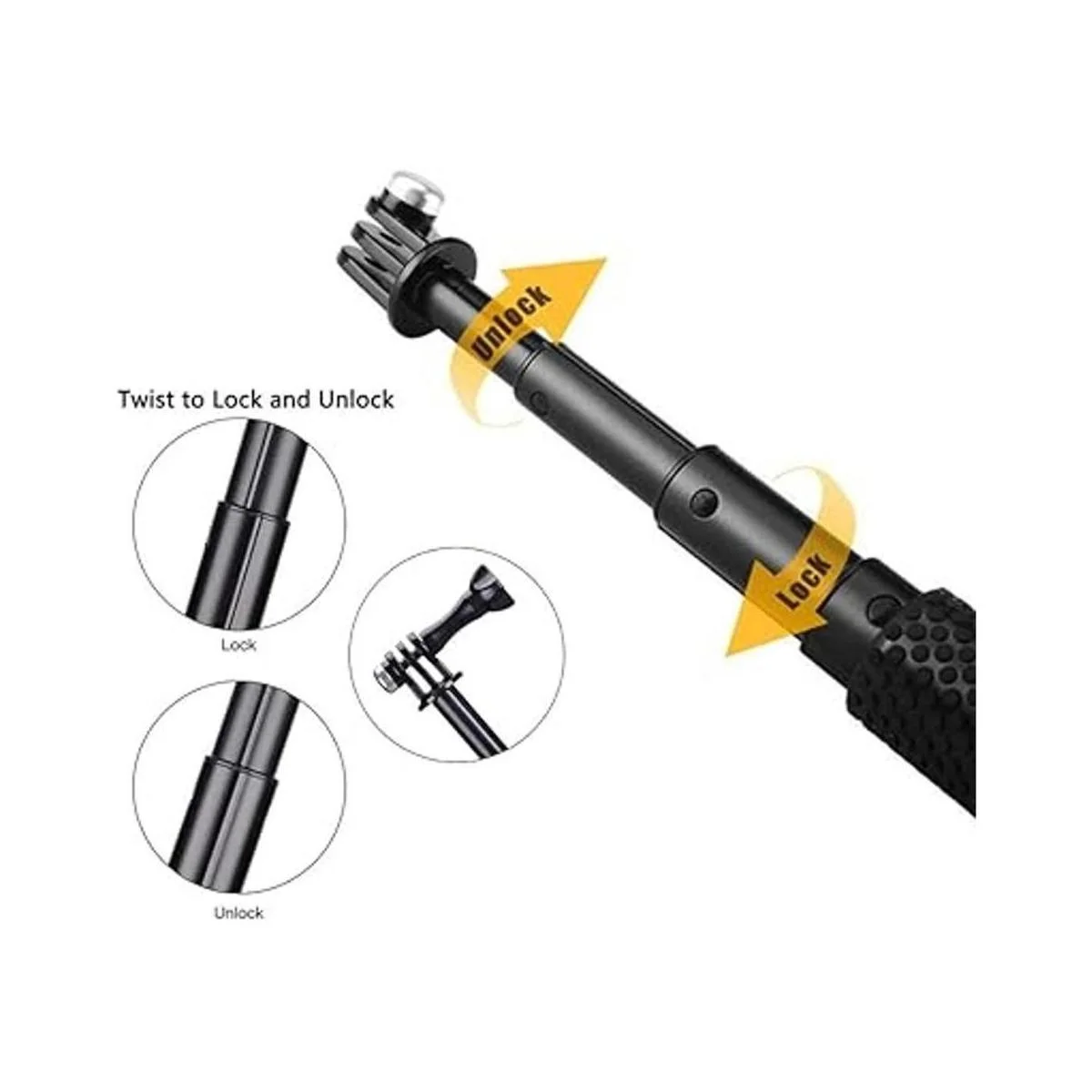 Fácil de usar: función de bloqueo giratorio; con 3 secciones extensibles; se monta a tu carcasa GoPro directamente; no necesita adaptadores adicionales. Se puede utilizar como un agarre de mano de cámara para fotos estáticas o de primer plano cuando está completamente plegado o como un poste de montaje más largo para capturar excelentes imágenes de vista, selfies cuando se extiende parcialmente o completamente
