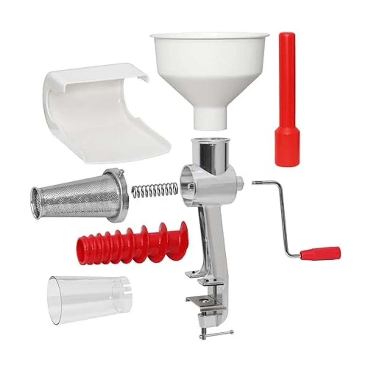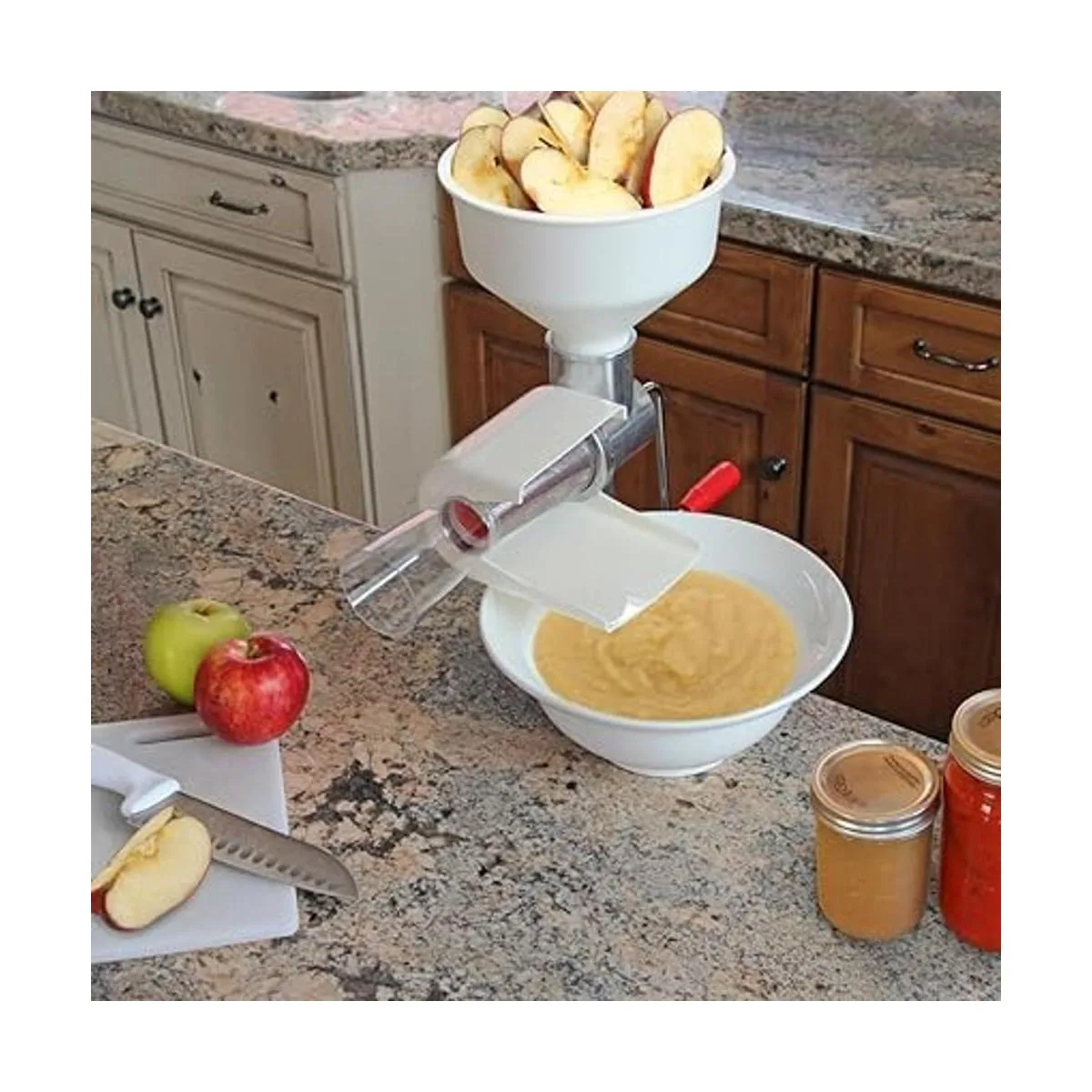Incluye pantalla de Apple/Tomato de acero inoxidable, espiral estándar, empujador de plástico y folleto de instrucciones y recetas