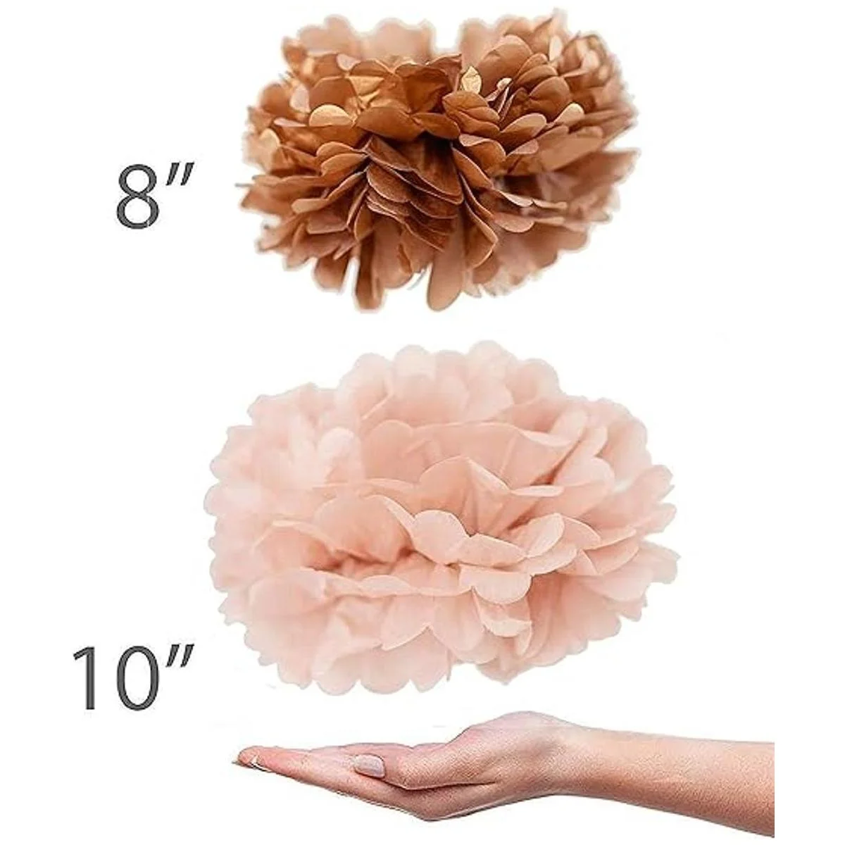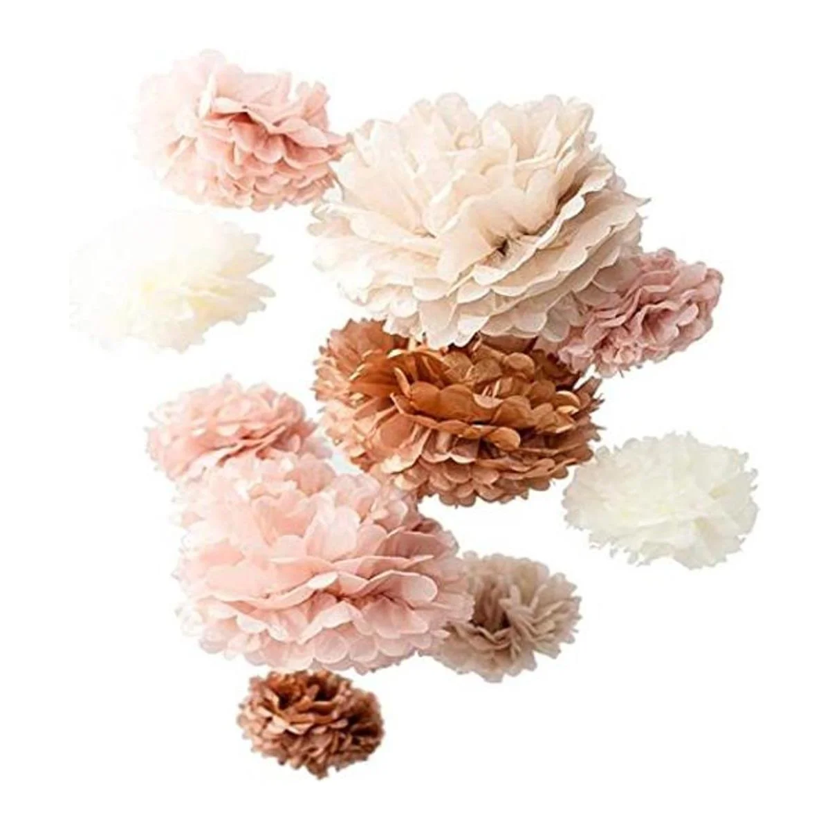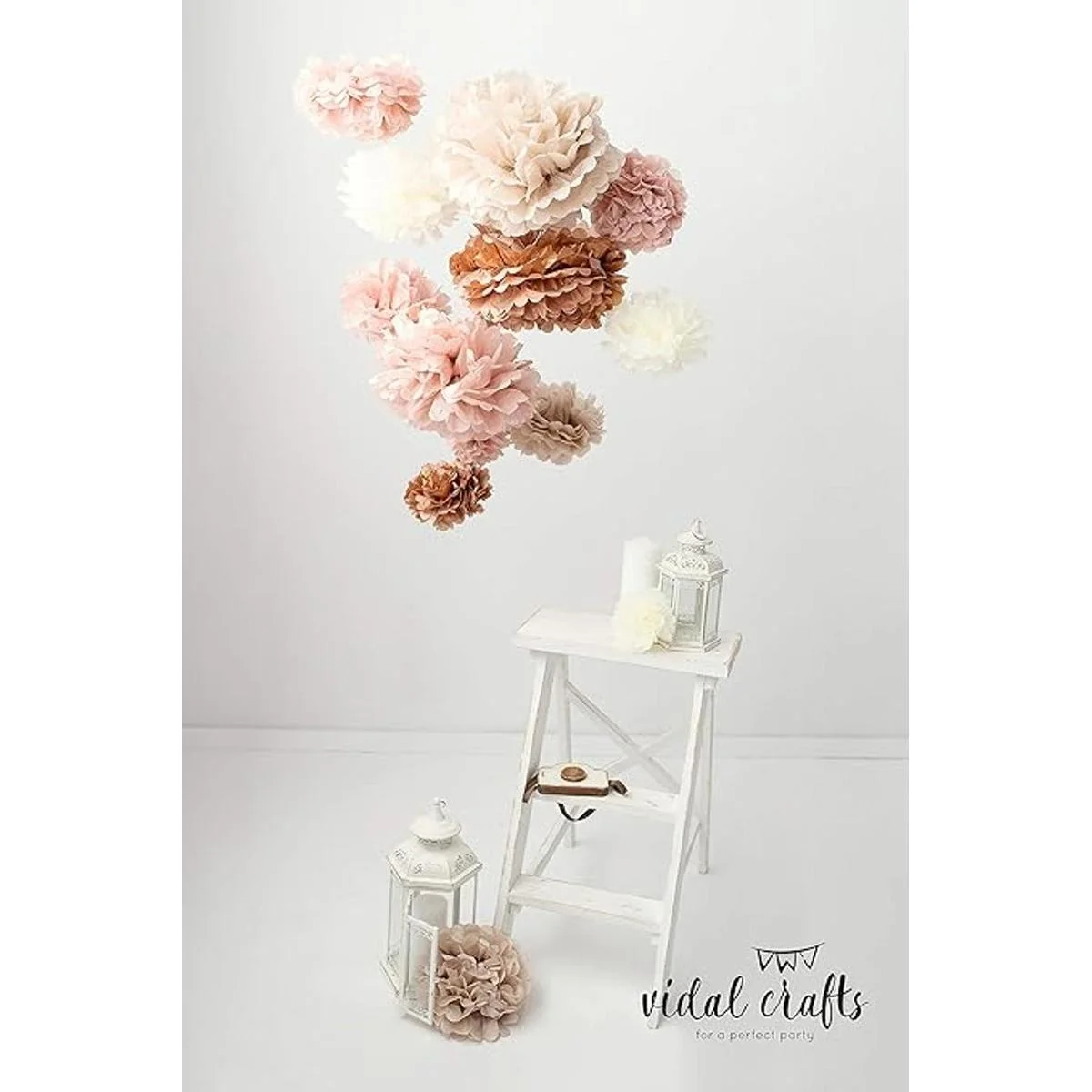 Vidal Crafts Juego de 20 pompones de papel de seda, color rosa polvoriento, oro rosa, marfil, gris pastel, 14 pulgadas, 10 pulgadas, 8 pulgadas, 6 pulgadas, flores de papel de seda para boda, cumpleaños, despedida de soltera, decoración de baby shower