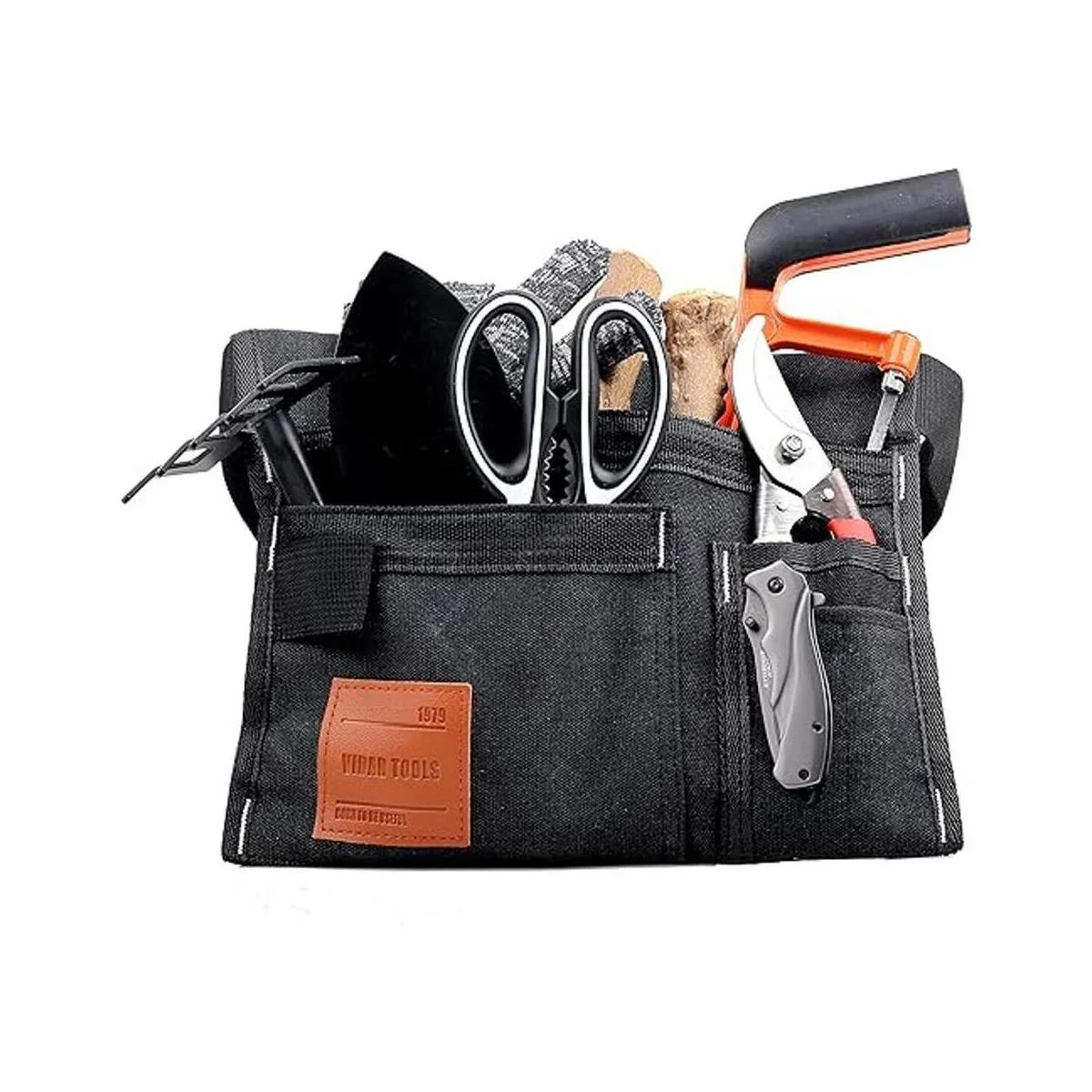VIDAR TOOLS Bolsa para cinturón de herramientas de un solo lado de 6 bolsillos, bolsa para cinturón utilitariodelantal de herramientas para carpinterojardineríacintura. Estructura de lona duradera. Cómodo cinturón ajustable. Peso ligero negro