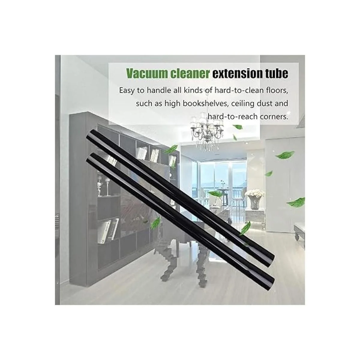 2. Tubo de extensión de aspiradora, inserta la cabeza pequeña en el otro tubo recto o enchufa en el cepillo para extender la longitud de trabajo, fácil de manejar una variedad de suelos difíciles de limpiar, tales como estanterías altas, polvo de techo y esquinas que no son fáciles de alcanzar.